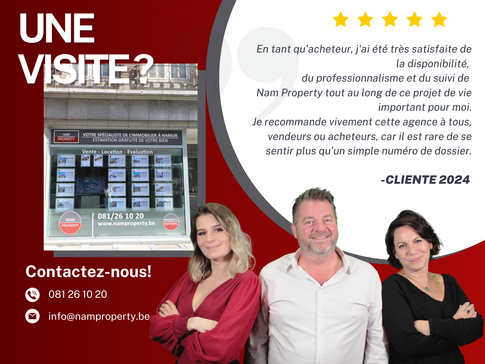 Situation idéale dans l'avenue principale de Jambes, à 4 km de l'E411, à proximité de la gare SNCB et des stations TEC.