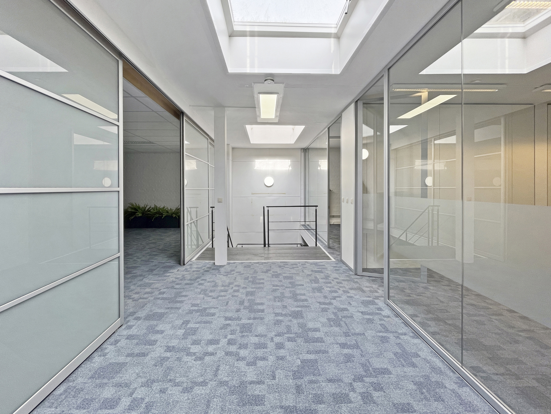 Espace central au 1er étage d’environ 290m² de bureaux. Sous-sol : caves sur 200m².