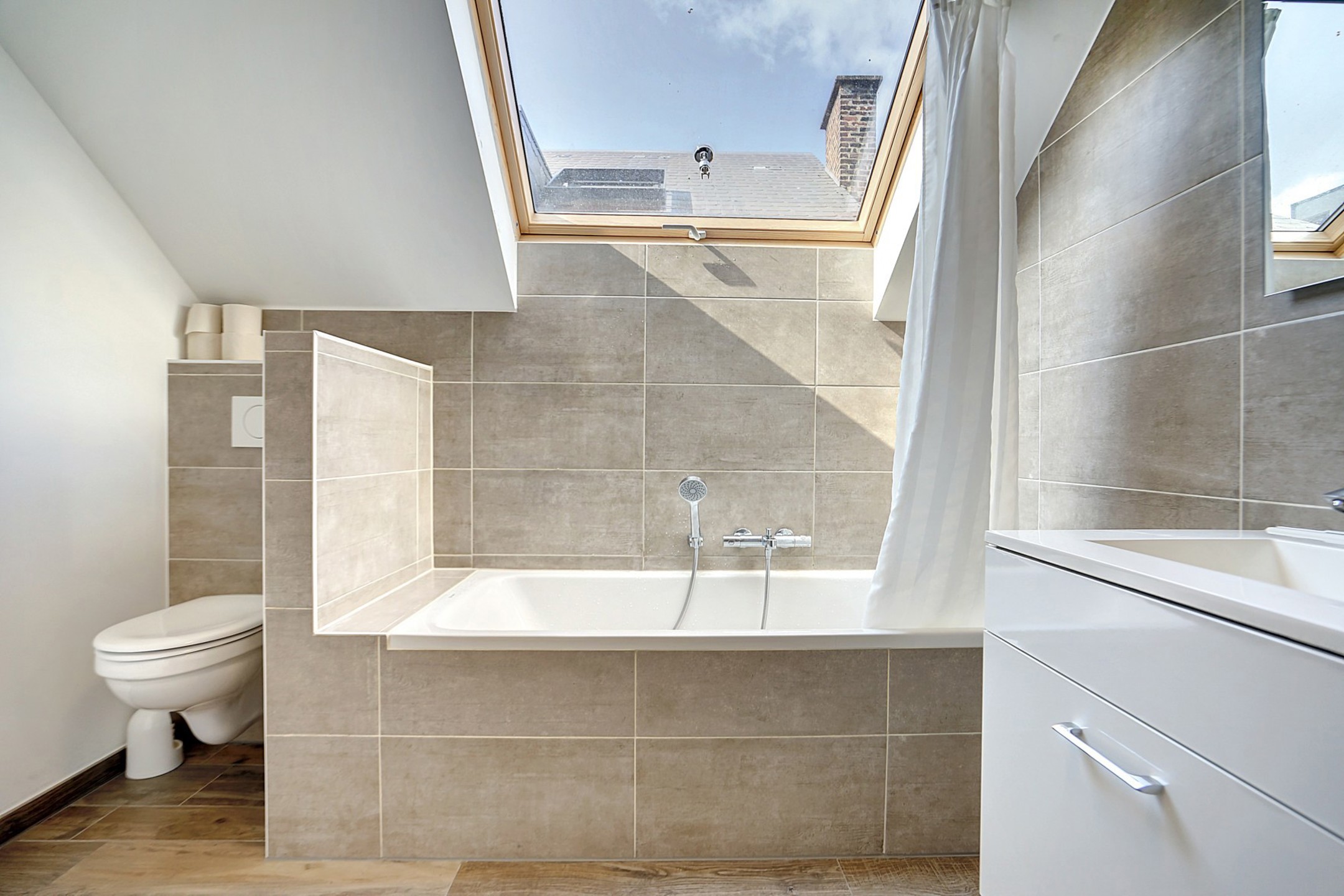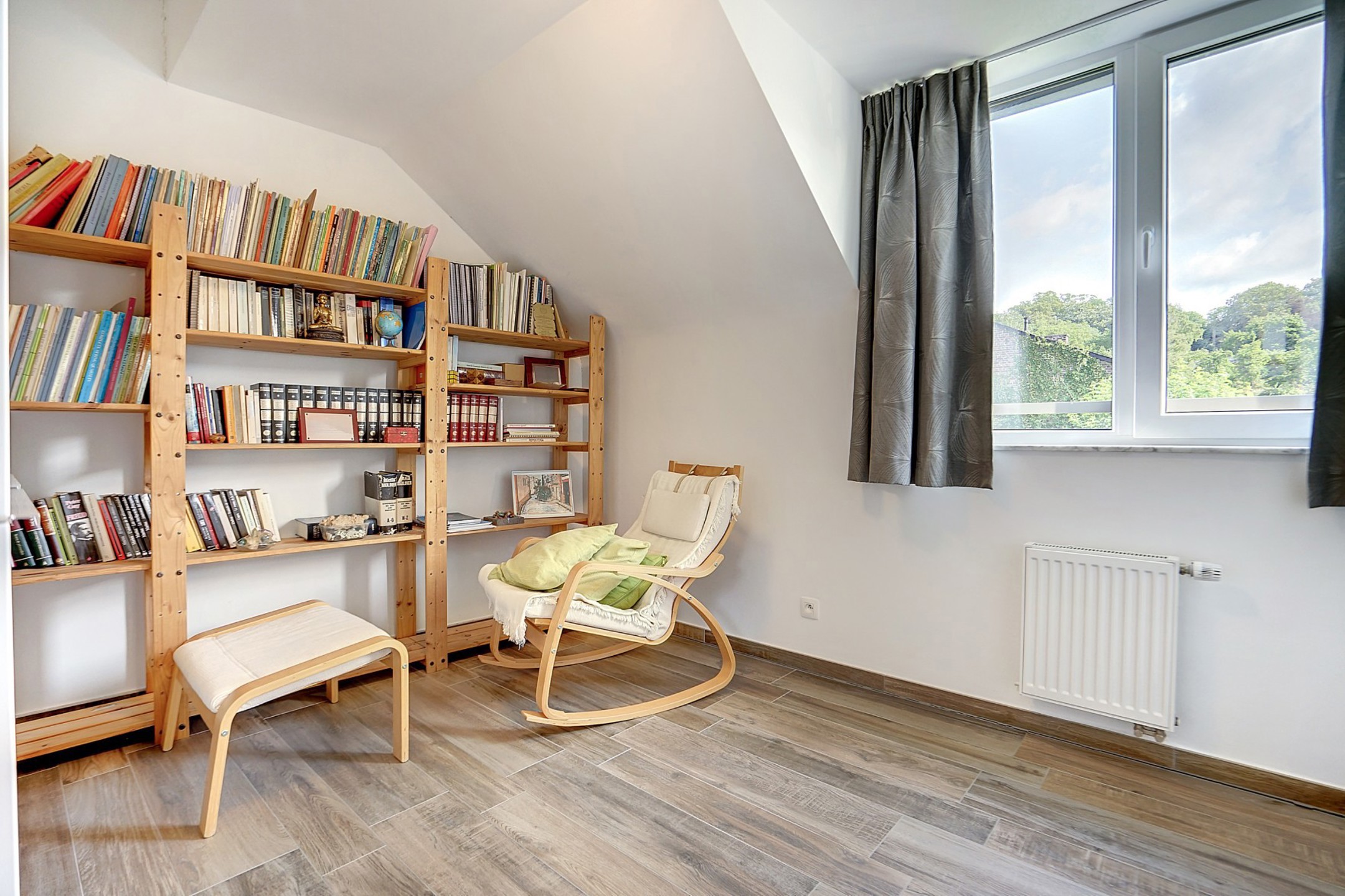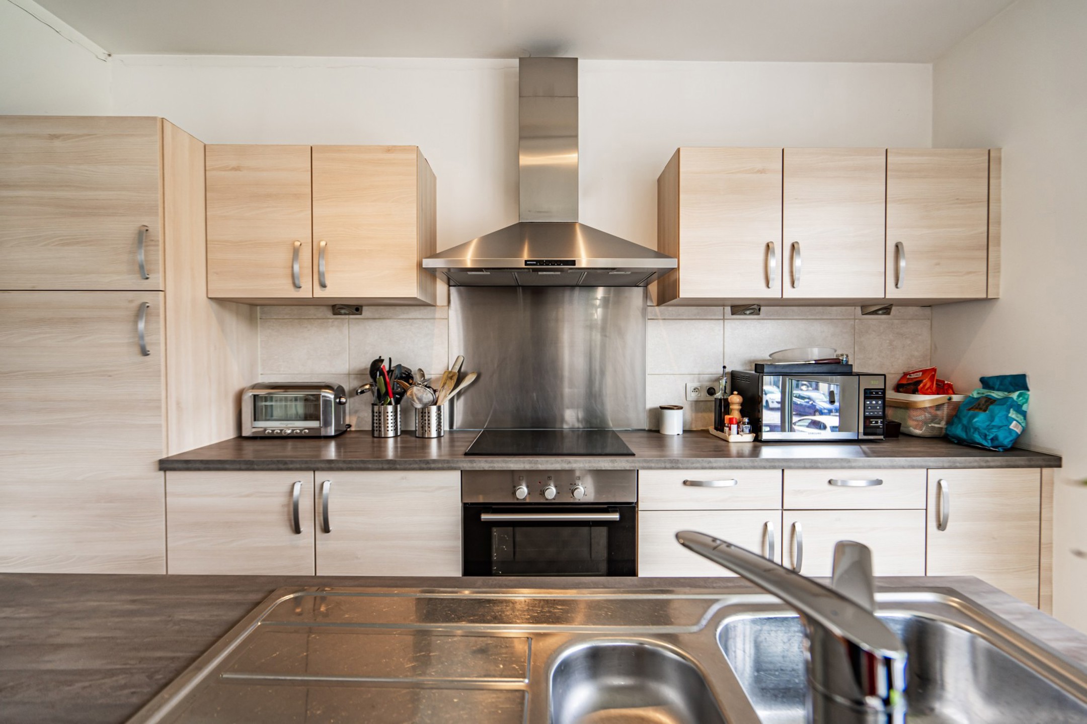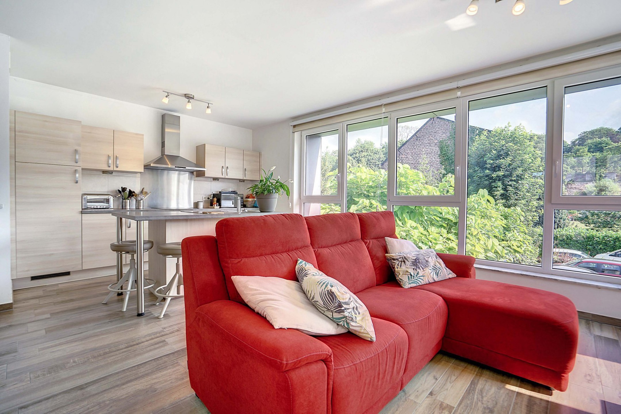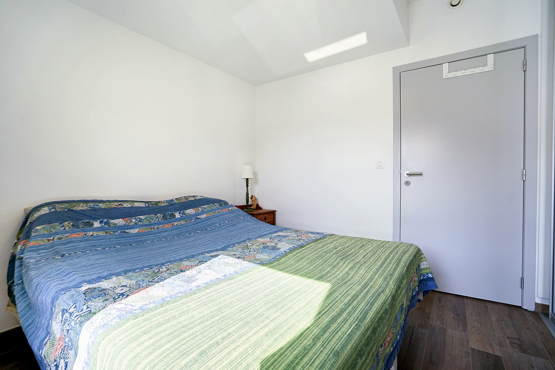 Dans un petit immeuble, très beau duplex de standing de +-106m² composé au 1er niveau de: hall d'entrée, toilette invités, lumineux séjour donnant sur une belle terrasse de +-7m², cuisine US hyper-équipée et buanderie. Nombreux placards de rangement dans le hall d'entrée.