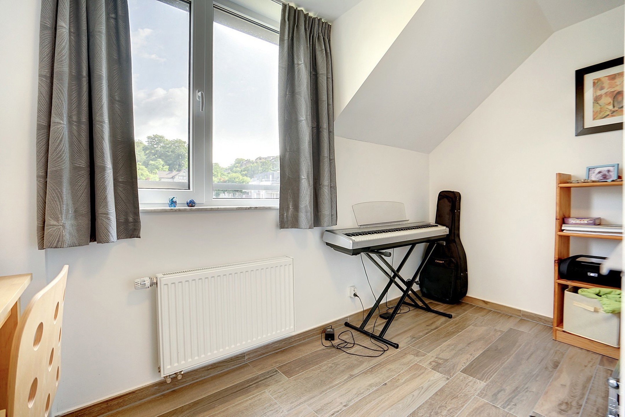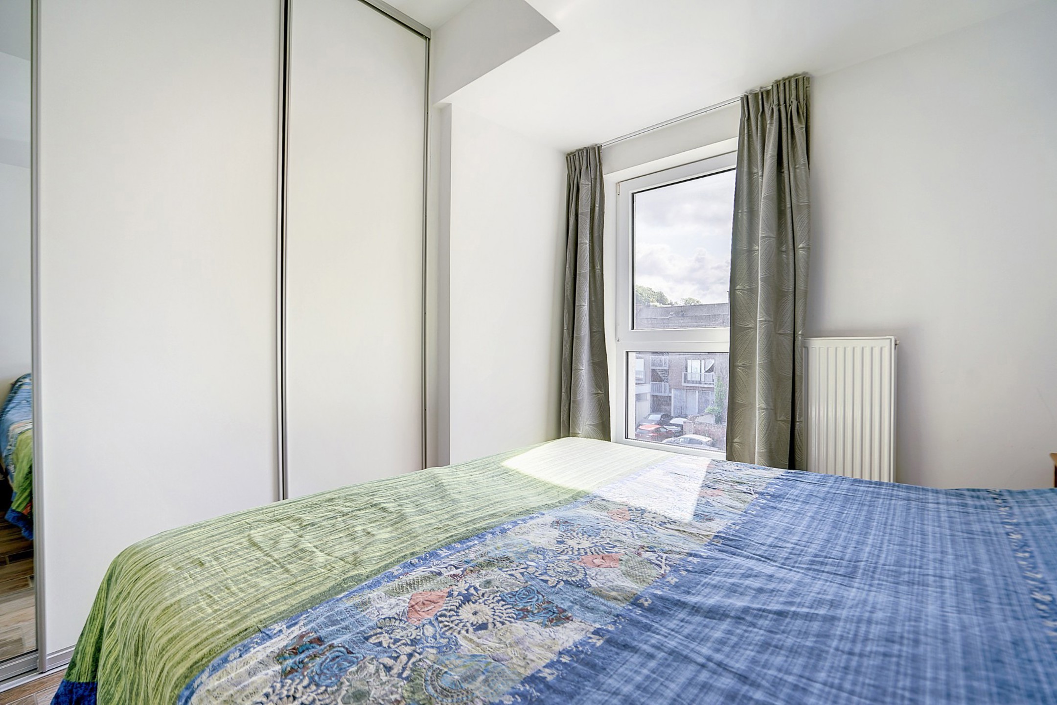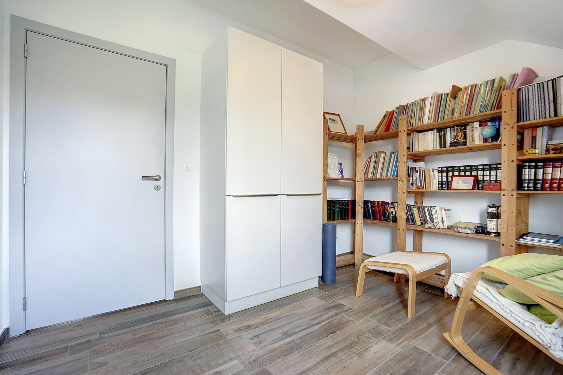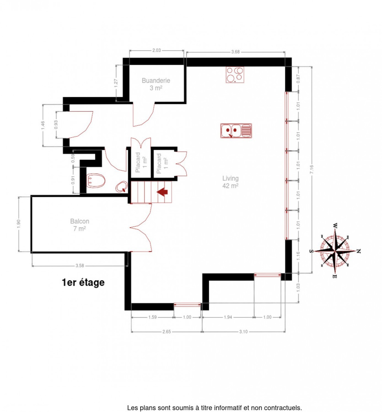 Dans un petit immeuble, très beau duplex de standing de +-106m² composé au 1er niveau de: hall d'entrée, toilette invités, lumineux séjour donnant sur une belle terrasse de +-7m², cuisine US hyper-équipée et buanderie. Nombreux placards de rangement dans le hall d'entrée.