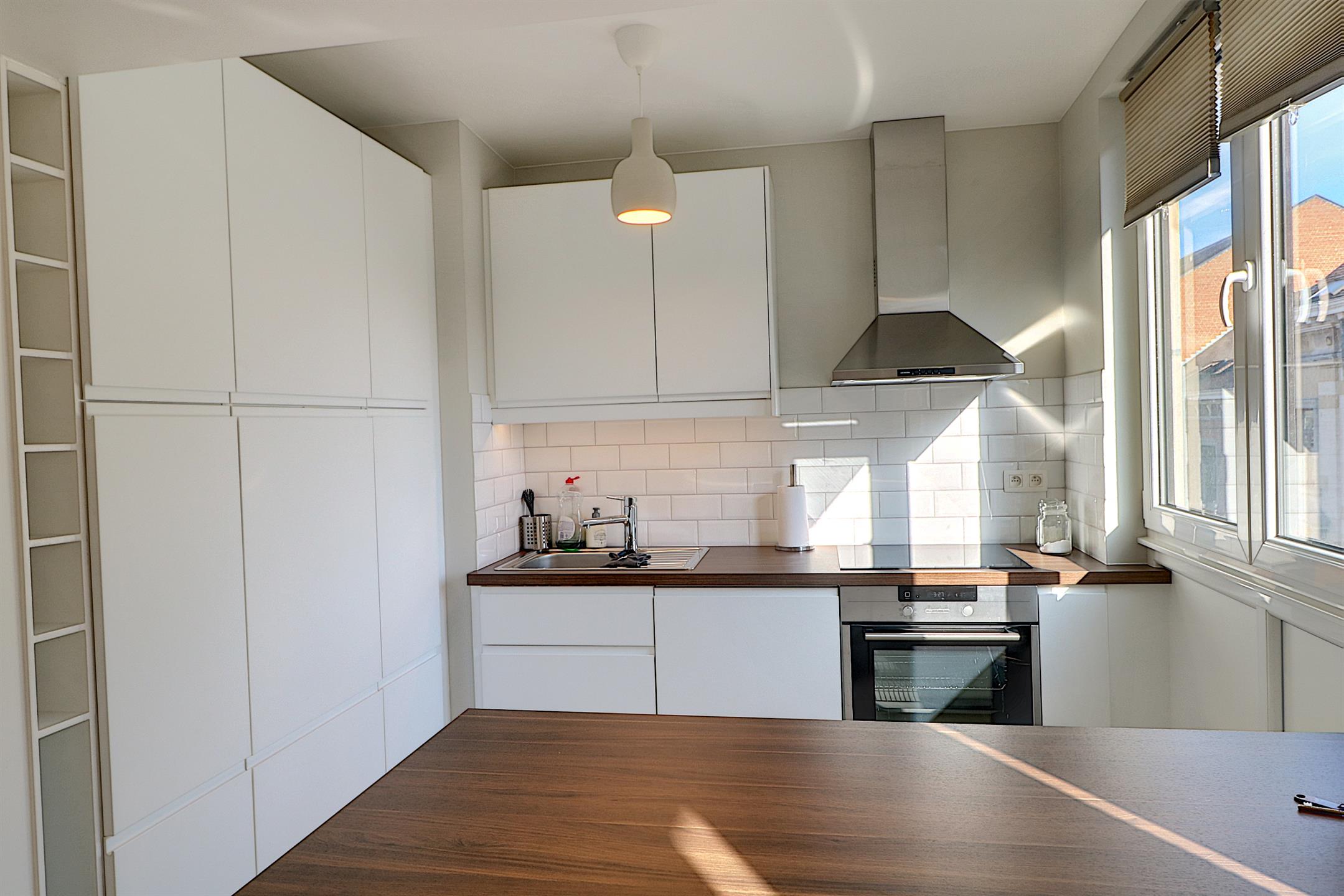 Centre-ville, sympathique appartement remis à neuf dans un immeuble avec ascenseur, et composé de: hall d'entrée, lumineux séjour, cuisine US hyper-équipée, 1 belle chambre à coucher, salle de douche (douche italienne, wc et emplacement lessiveuse) et petit grenier de rangement. LIBRE LE 01/01/24