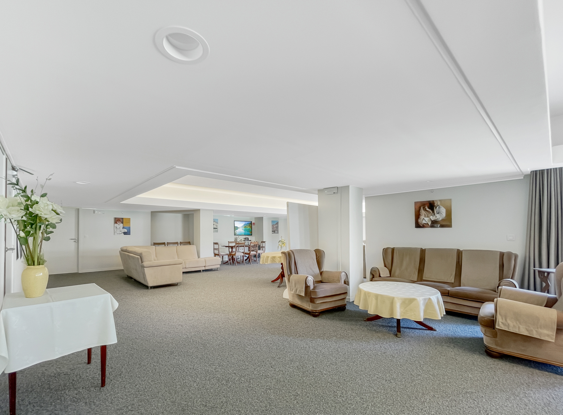 Espaces communs conviviaux : salon, restaurant, terrasses, bibliothèque, salon de coiffure, animations…