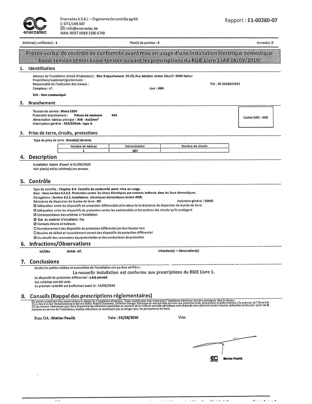 | Certificat d'électricité (oui/non) | oui, conforme |