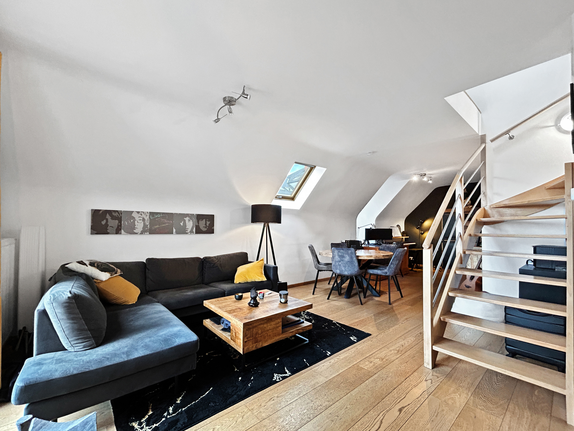 Situé au 4ᵉ et 5ᵉ étage d’un immeuble récent (2011), ce charmant duplex offre une vue imprenable sur la Citadelle. L’immeuble se trouve au bout d’une impasse, dans un quartier particulièrement calme, tout en étant à moins de 5 minutes à pied de la passerelle permettant d’accéder facilement au centre-ville de Namur.