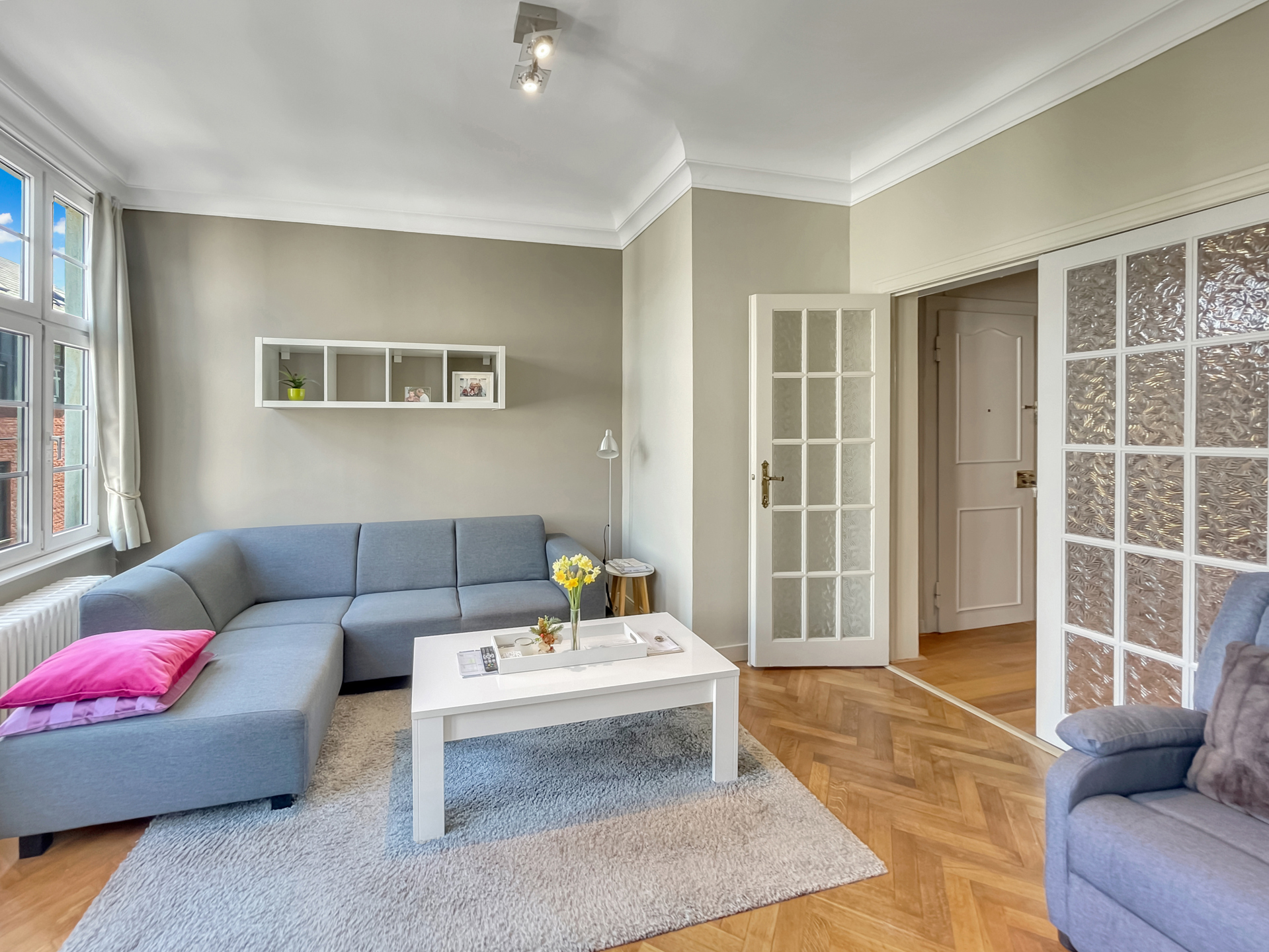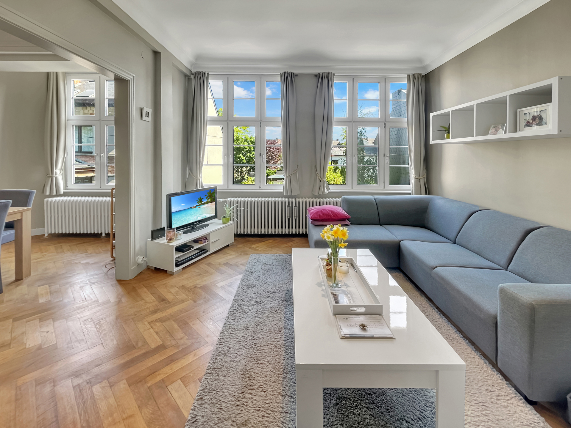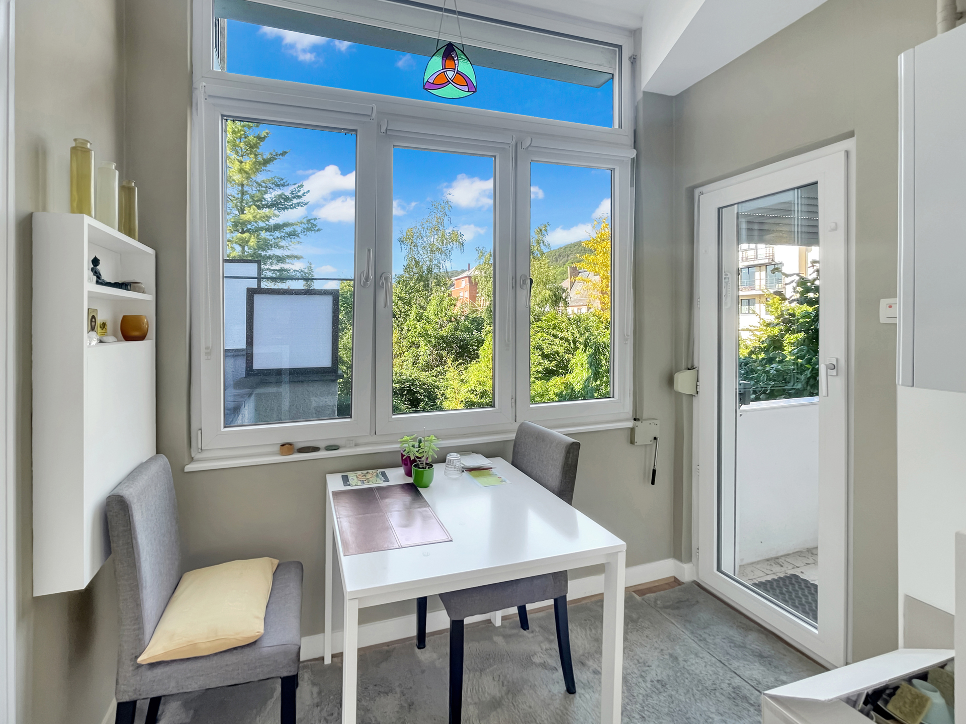 A 100 m de la promenade du bord de la Meuse, de tout commerce et facilité, écoles, transports en communs, autoroute E411et N4 à quatre minutes.