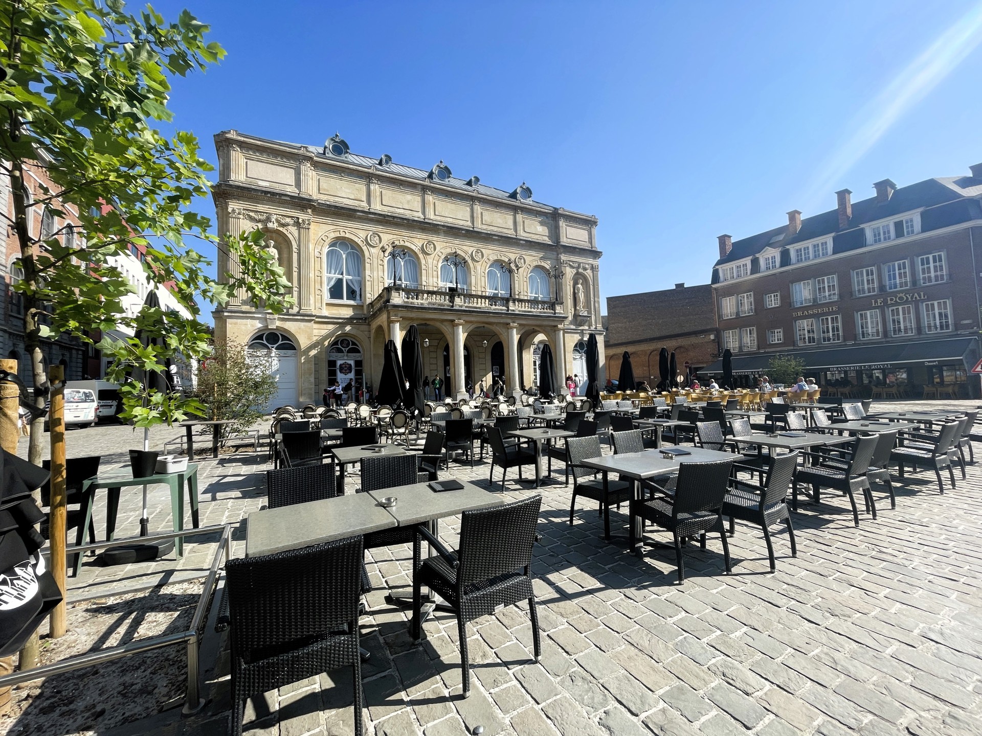 Terrasse de grande capacité, parfaite pour les beaux jours (50 couverts place du théâtre +12 couverts devant la vitrine + 30 couverts vitrine coté beffroi)