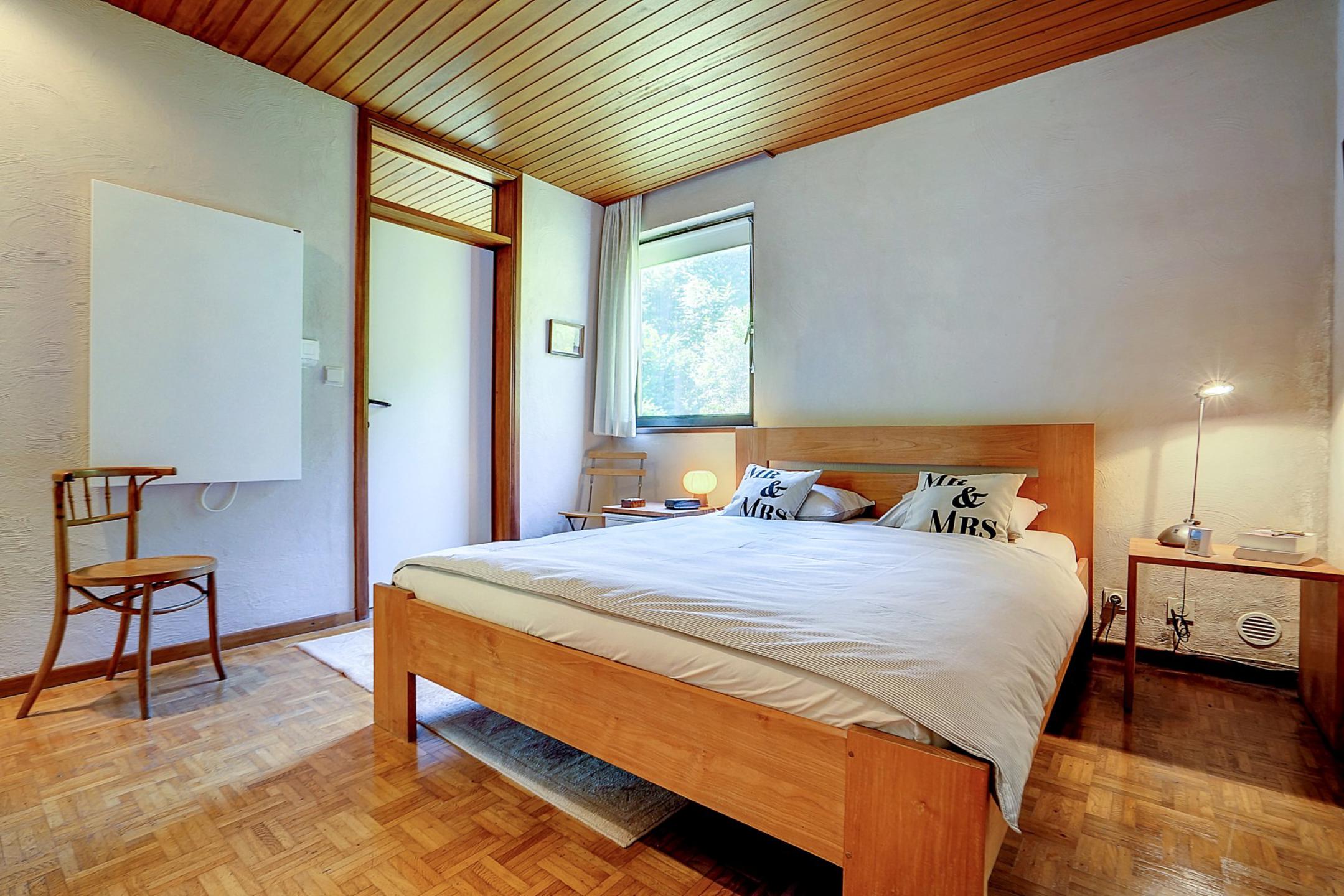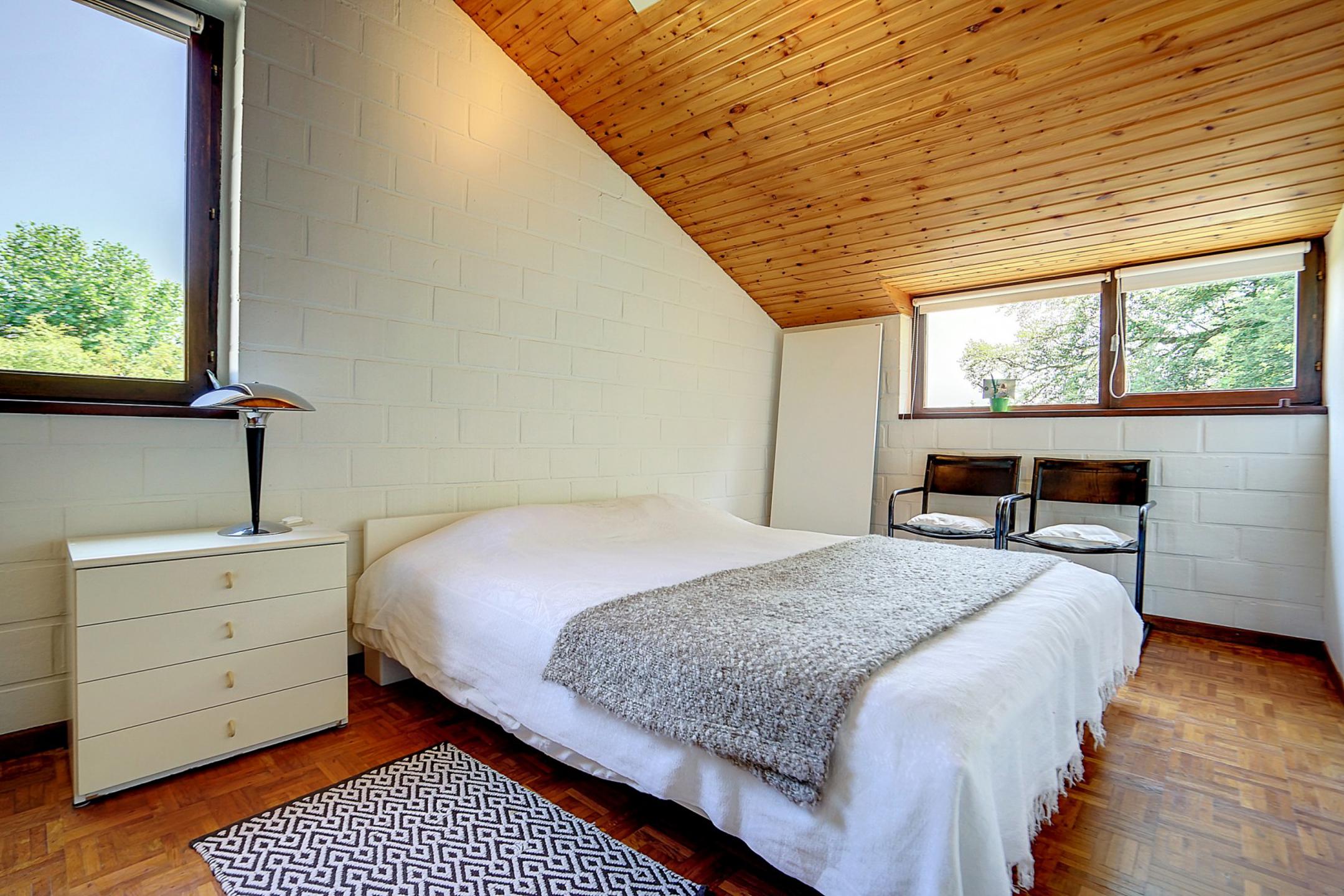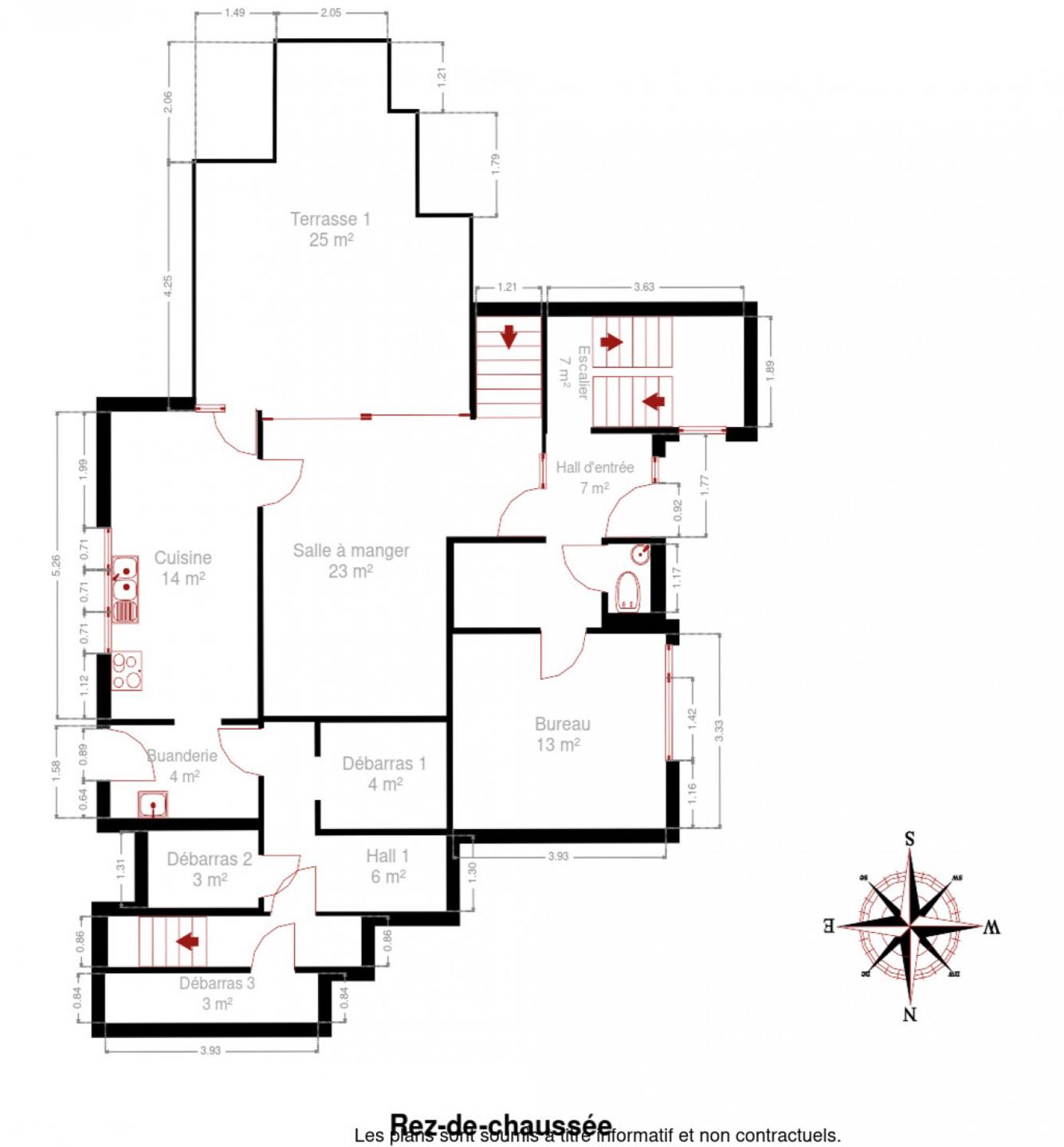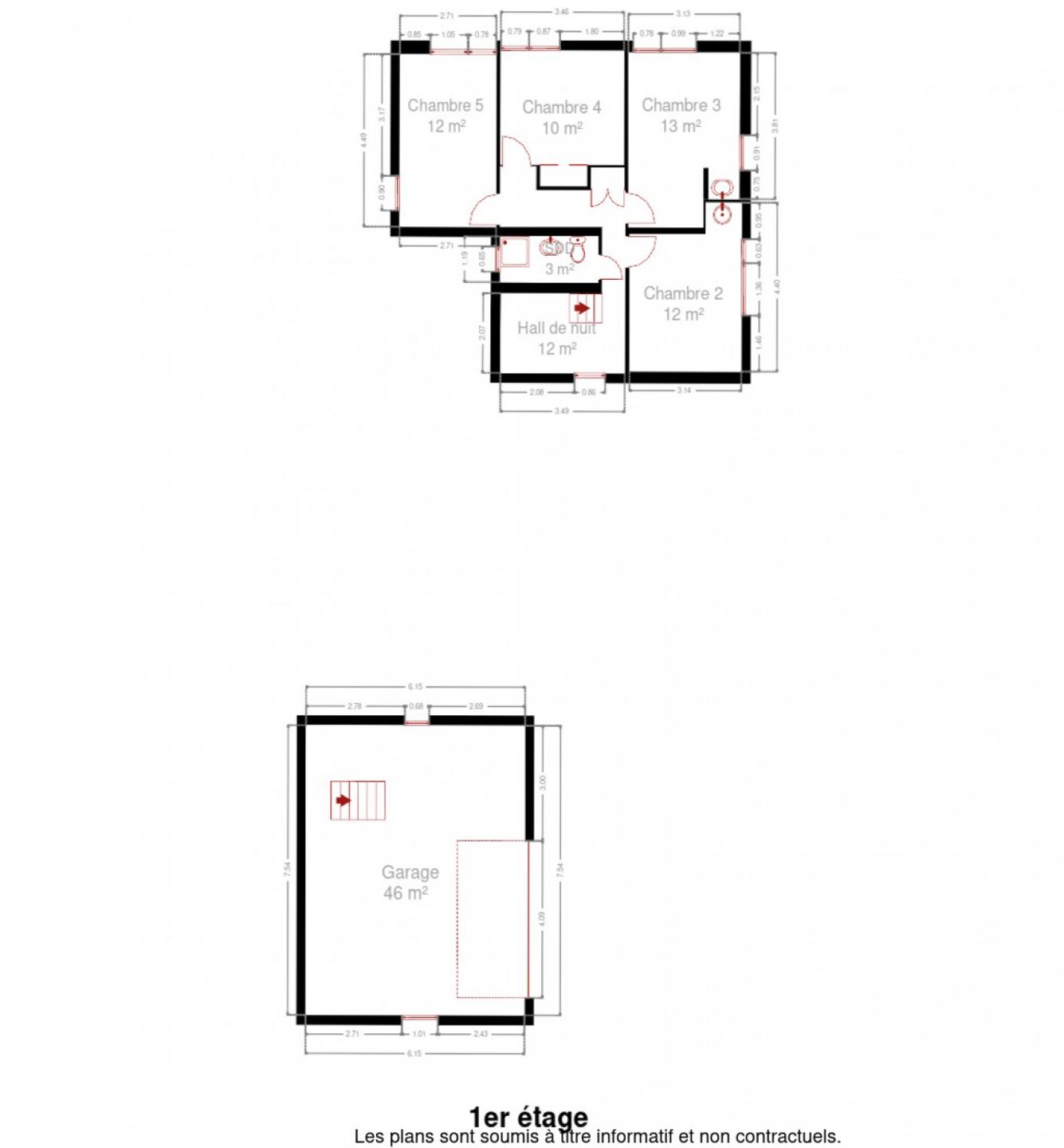 Elle se compose comme suit : double garage, réserves, buanderie, bureau, cuisine récente hyper équipée, séjour en contrebas avec cassette à bois. Espace parental avec grande chambre et salle de bains, et 4 chambres avec salle de douche pour les enfants.