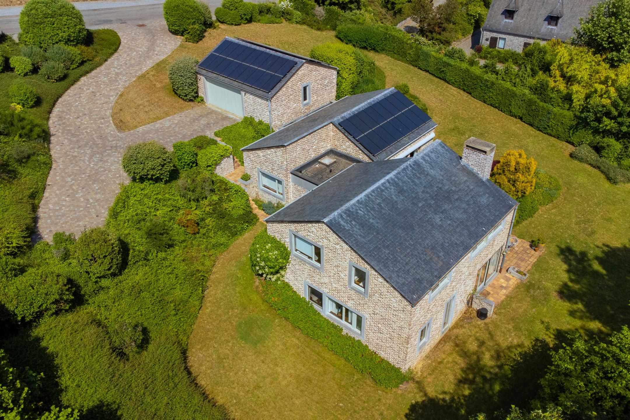 Nombreux panneaux photovoltaïques pour l'électricité et la production d'eau chaude. Châssis Dv d'origine. Toiture exceptionnelle en ardoises naturelles.