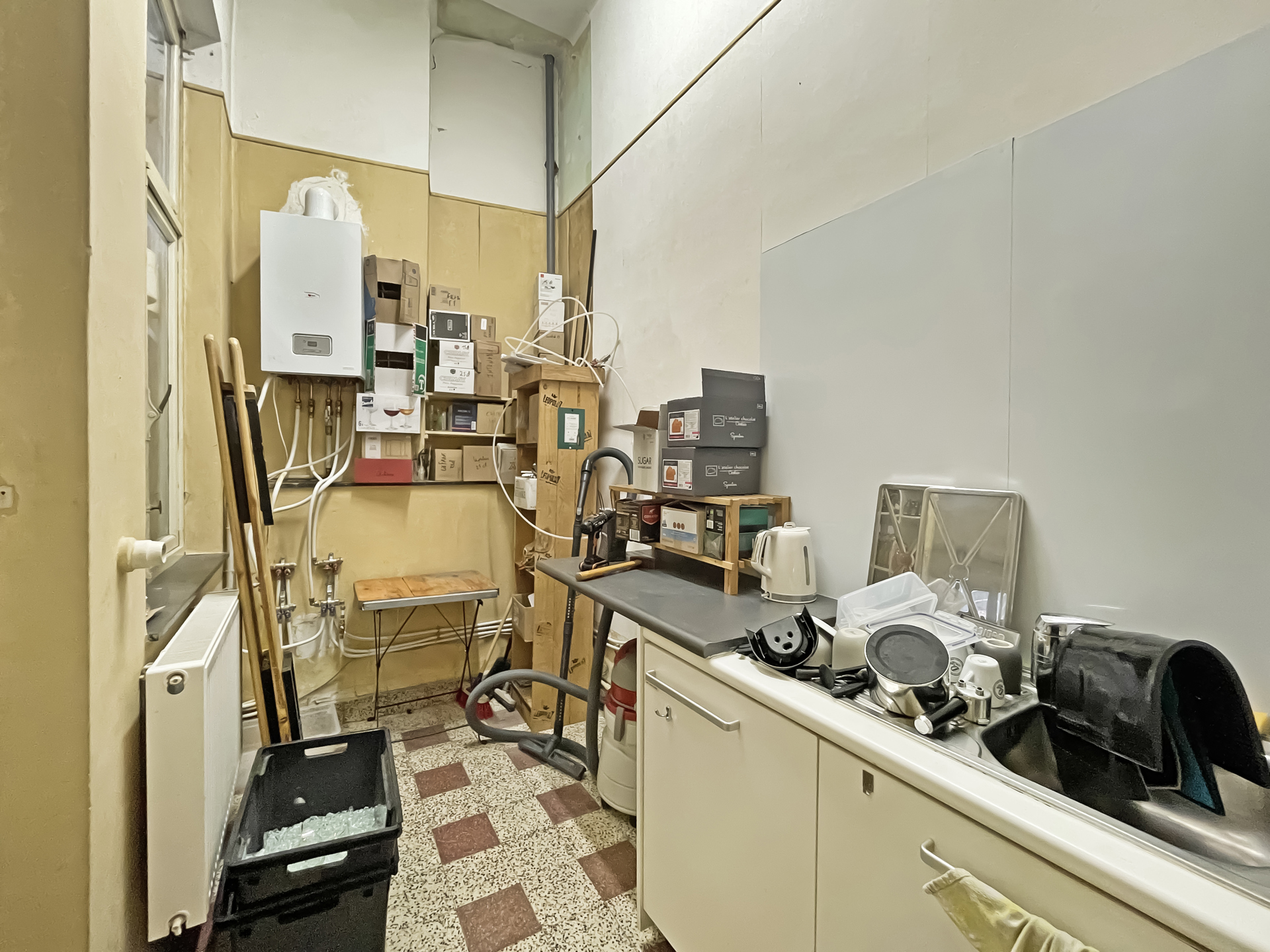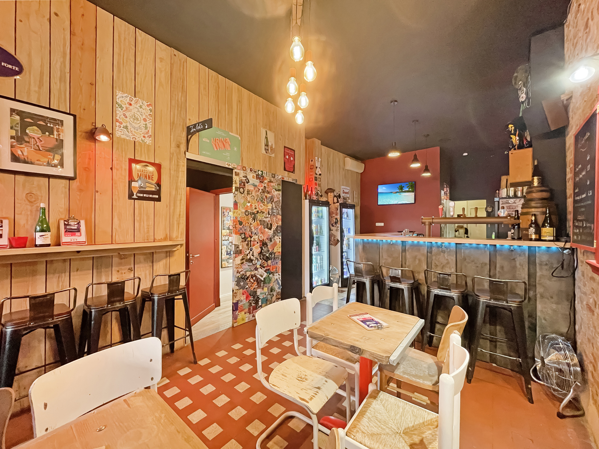 Le local se compose d'une surface commercial d'environ 60m², une grande réserve à l'arrière. Et une cave de 40m². Le bar exploite également une petite terrasse devant le local.