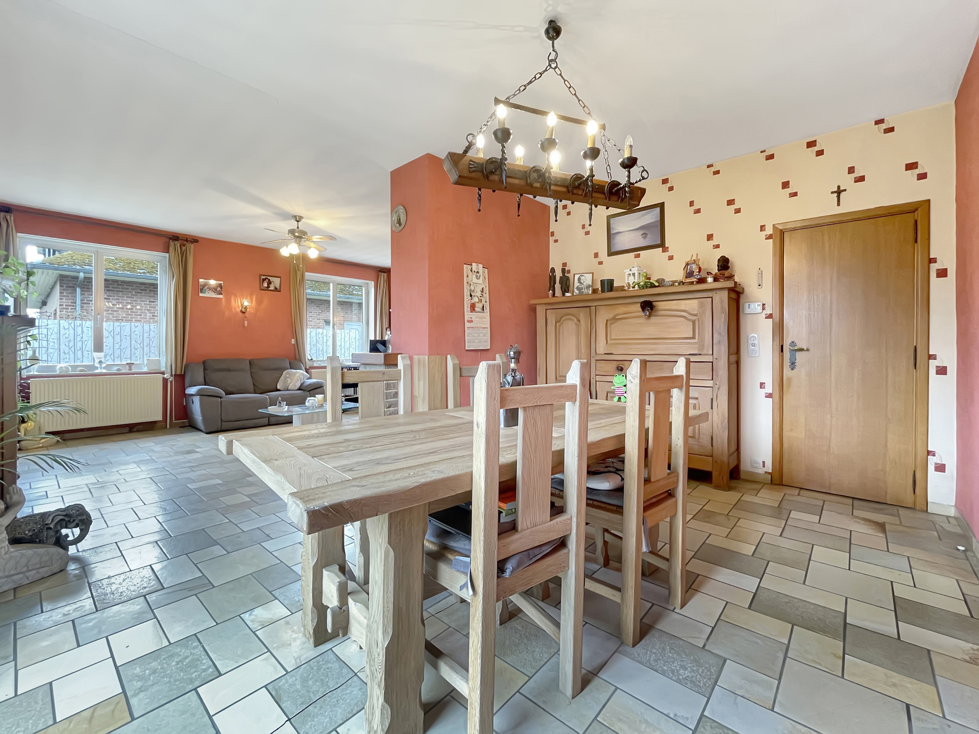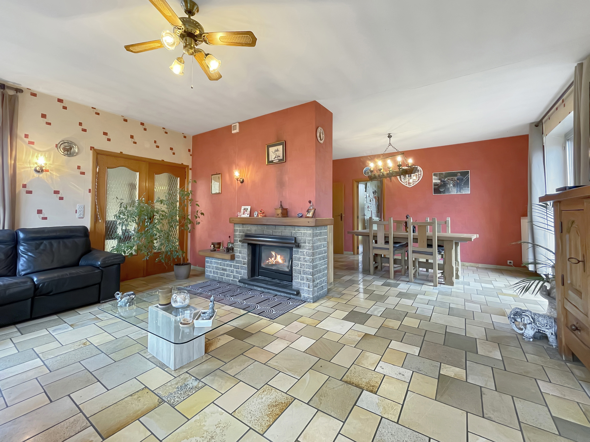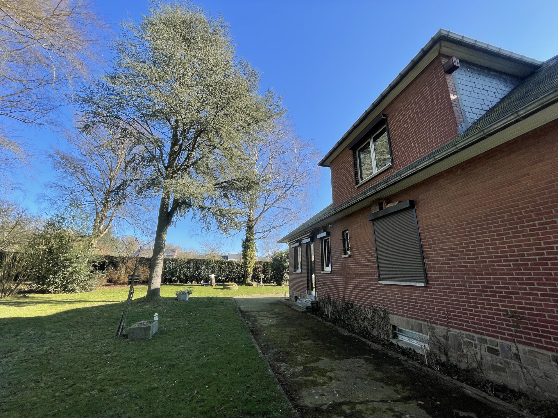 VENDU - VENDU - VENDU Nam Property est ravi de vous présenter cette vaste villa plain pied. Située dans une impasse, offrant un cadre paisible et verdoyant, Vous serez charmé par son agréable jardin arboré de ±15 ares ainsi que par ses nombreux espaces de rangement. Composition de la maison - Sous-sol : plusieurs caves idéales pour du stockage ou un atelier, un spacieux garage et un coin douche. - Rez-de-chaussée : un hall d’entrée avec espace bureau, WC, salle de bains, séjour lumineux avec cassette à bois, salle à manger, cuisine et trois grandes chambres. - Étage : deux chambres supplémentaires et trois espaces greniers offrant un beau potentiel de rangement. Un garage indépendant avec porte sectionnelle motorisée vient compléter l’ensemble. Équipements et confort - Système d’alarme - Adoucisseur d’eau - Compteur bihoraire - Volets électriques sur tous les châssis Cette villa est idéale pour une famille en quête de quiétude et d’espace, mais conviendrait également parfaitement à un entrepreneur ayant besoin d’un espace de stockage ou d’un atelier. Intéressé ? Contactez-nous dès maintenant pour une visite !