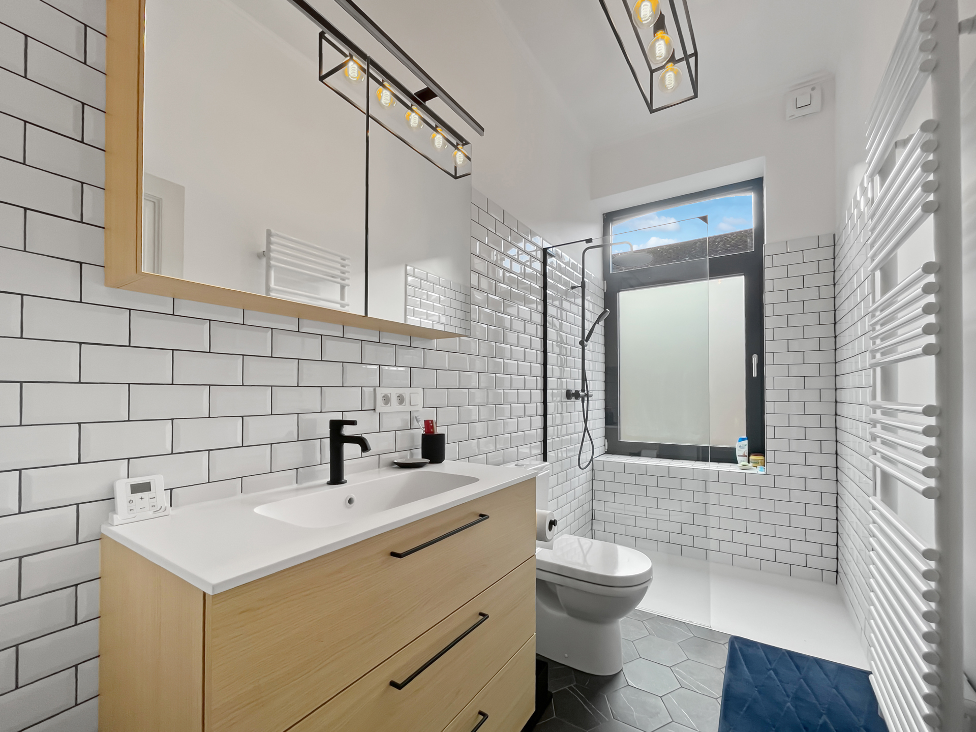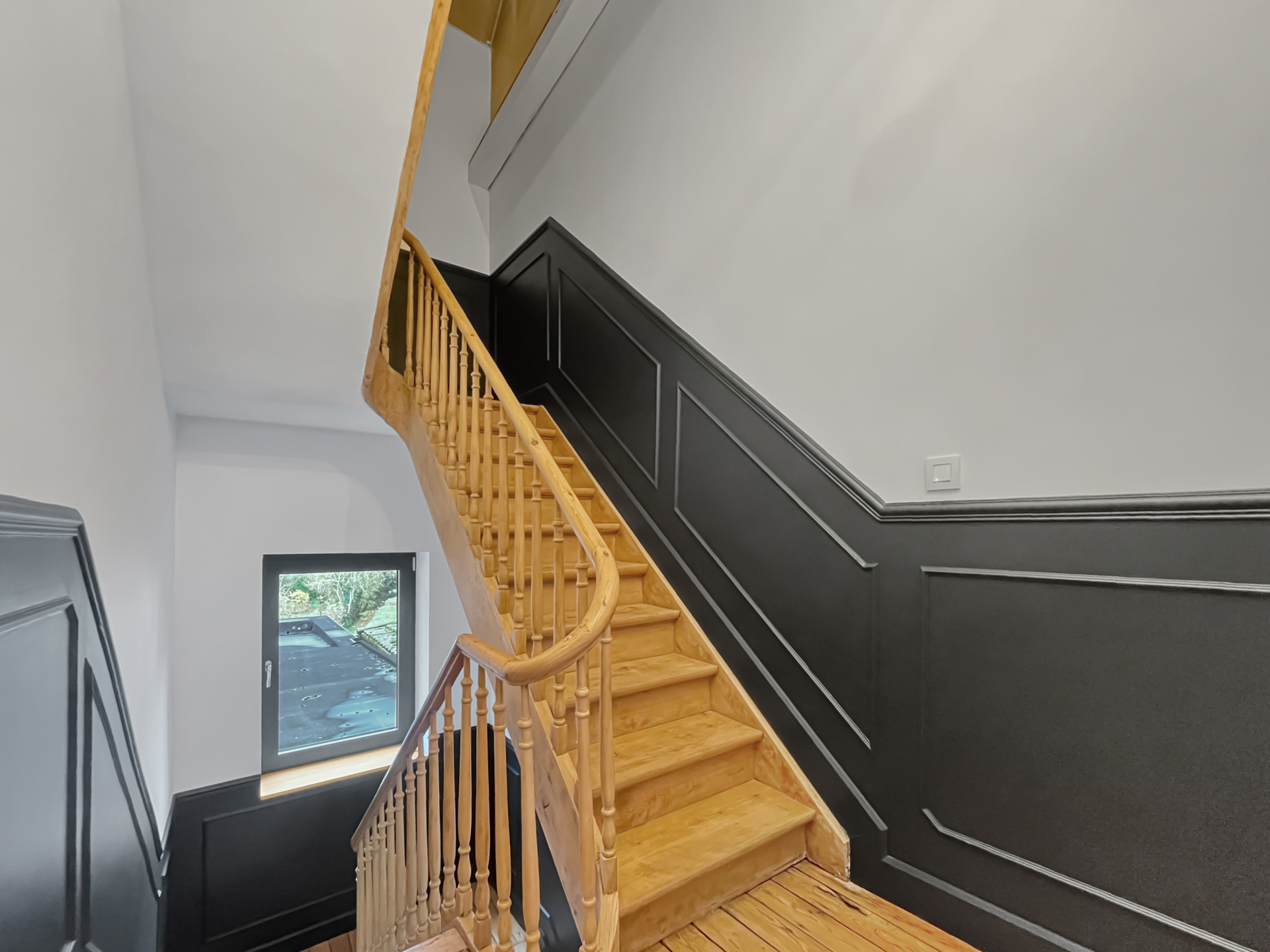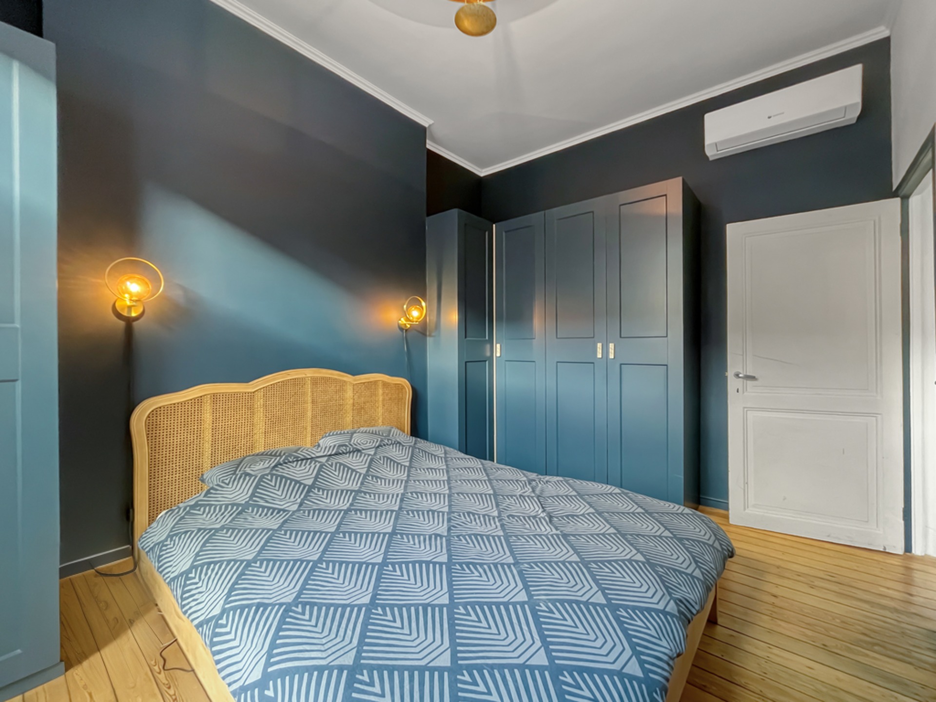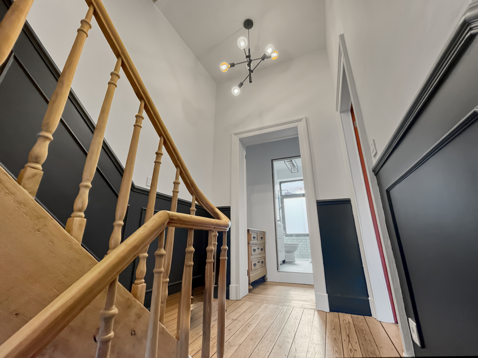 À l’étage, vous découvrirez deux chambres, toutes deux dotées d’un parquet d’origine entièrement restauré, ainsi qu’une salle de bains avec une grande douche italienne.