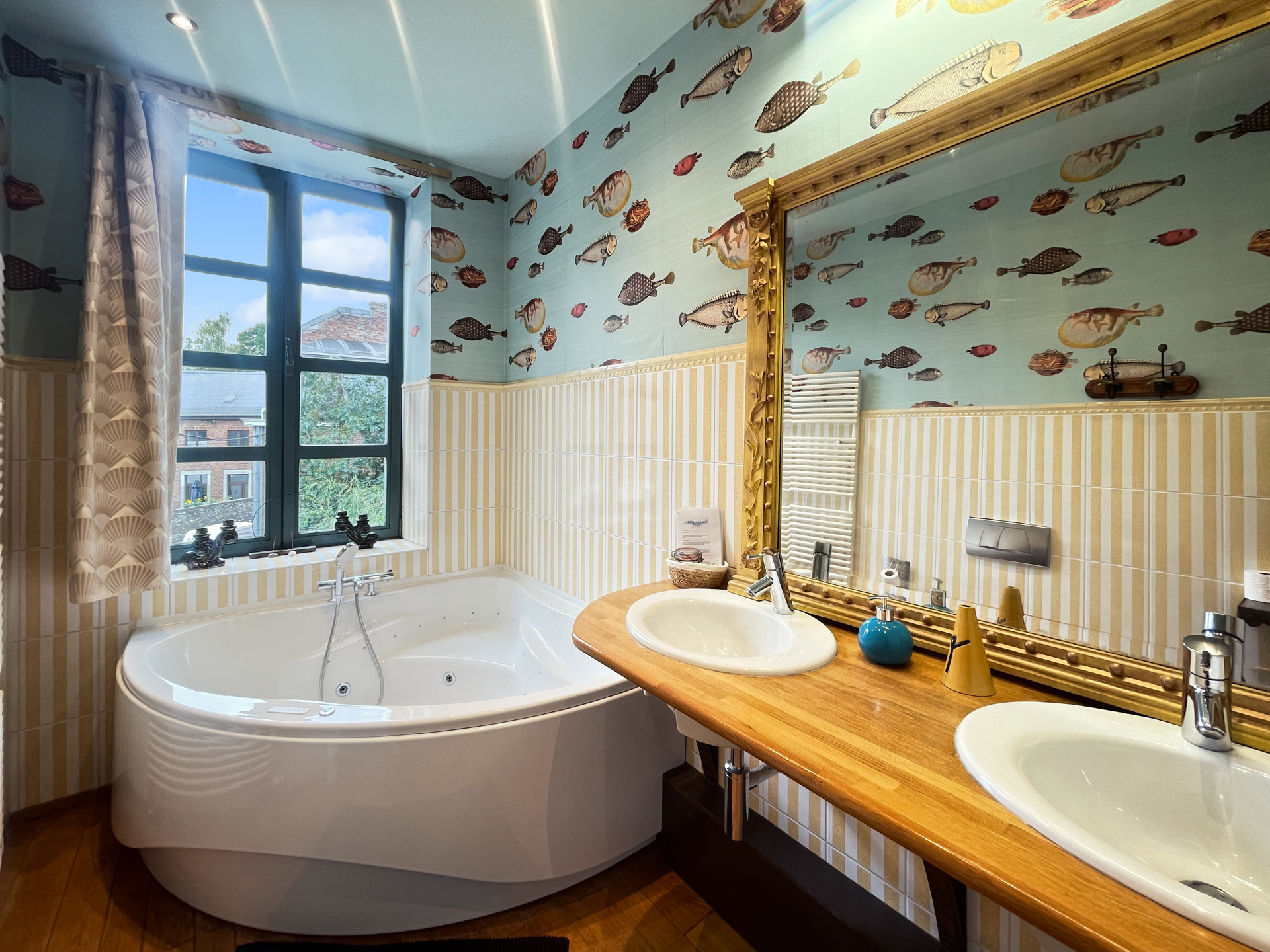 Deuxième étage : composé de deux belles chambres, un hall de nuit, un WC séparé et une salle de bains élégante équipée d’une baignoire et d’une douche en schiste d’Herbeumont, pour un maximum de confort.