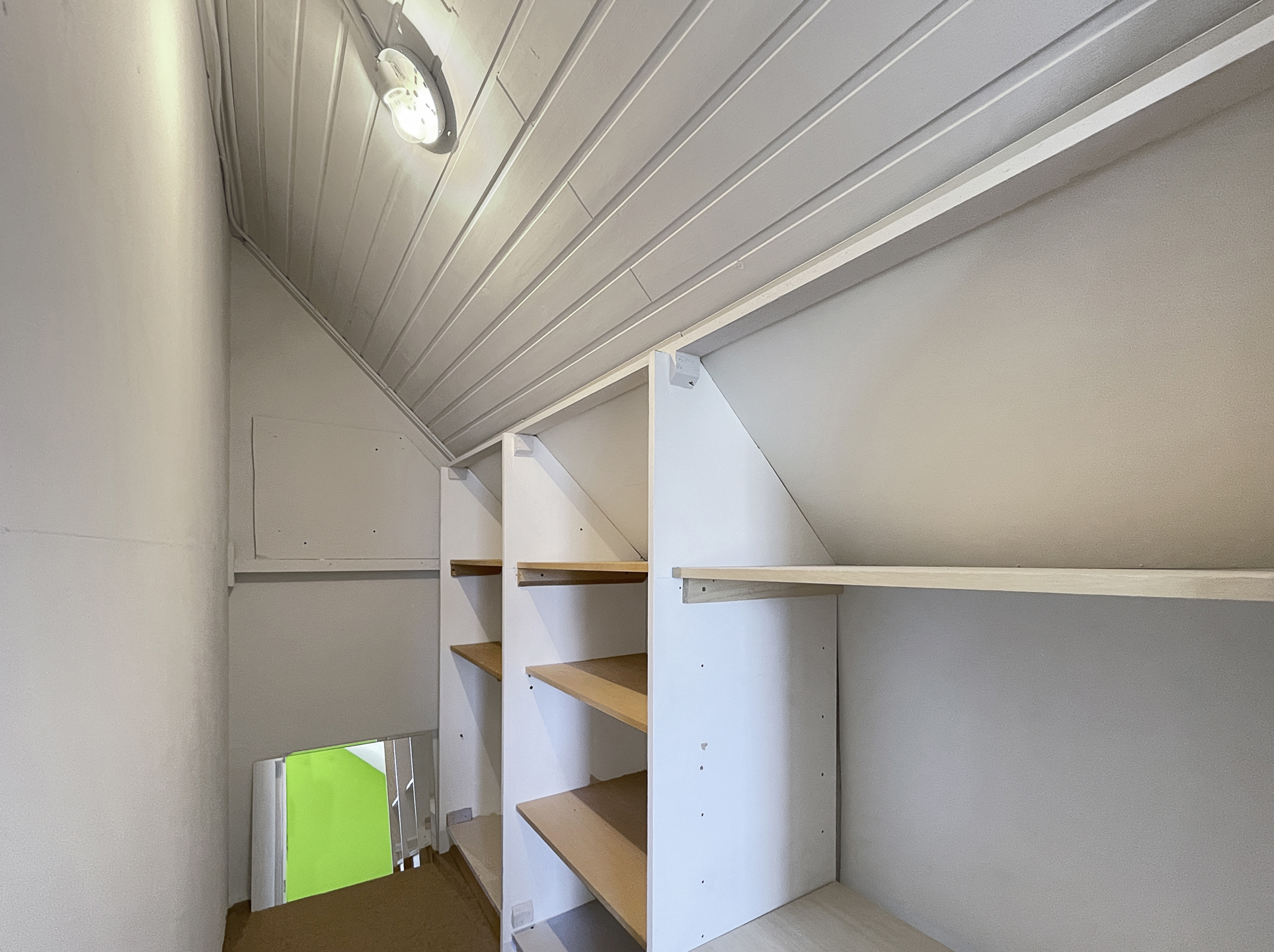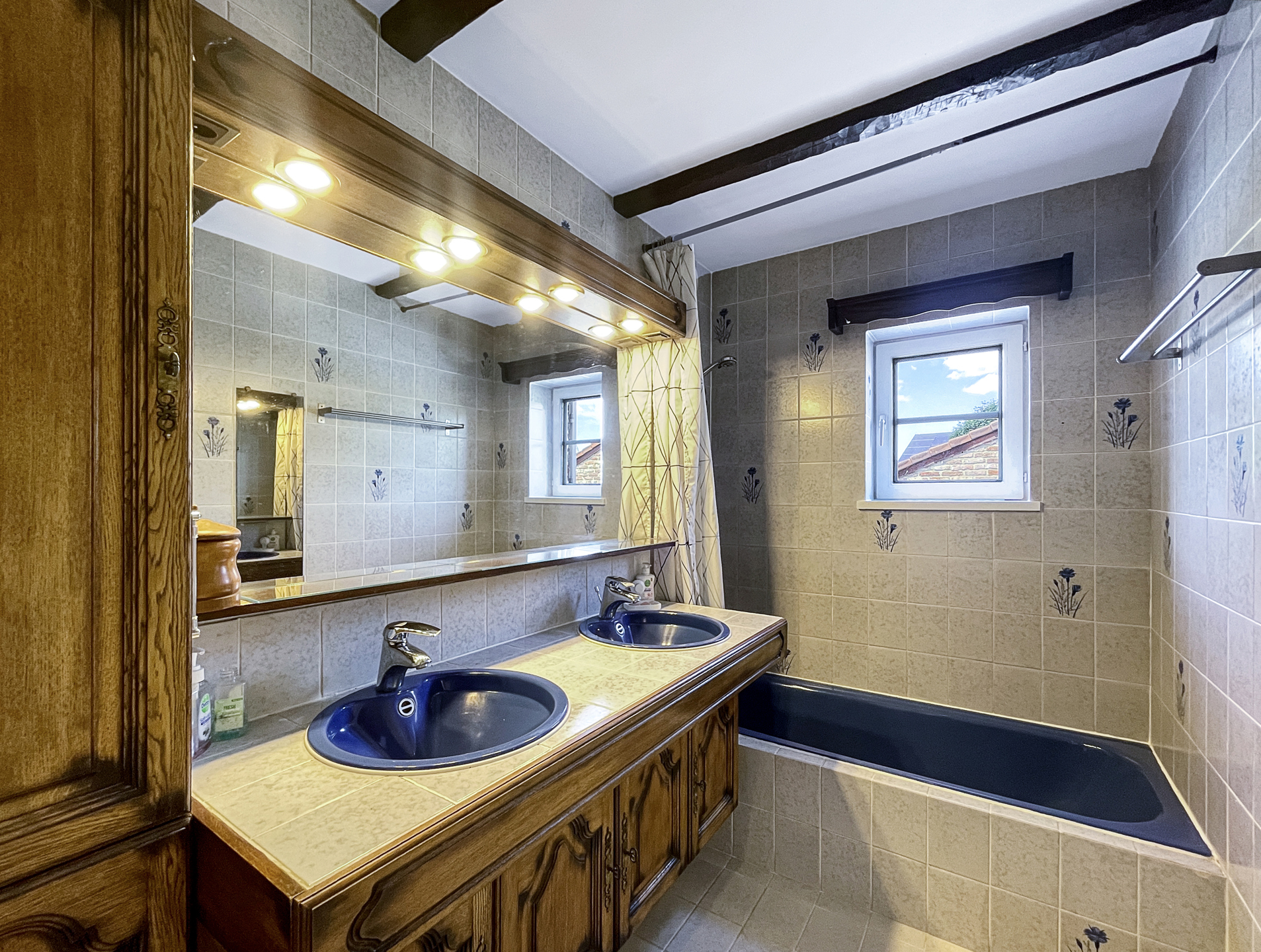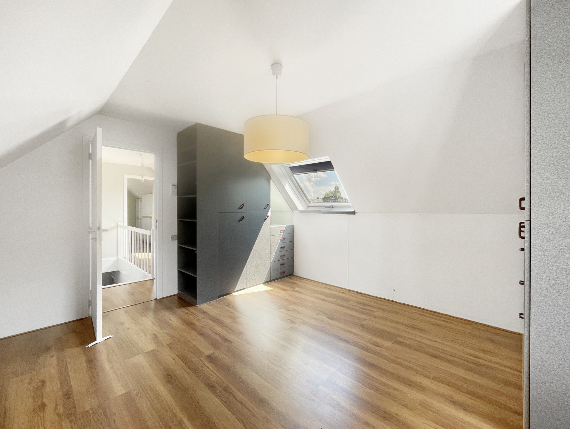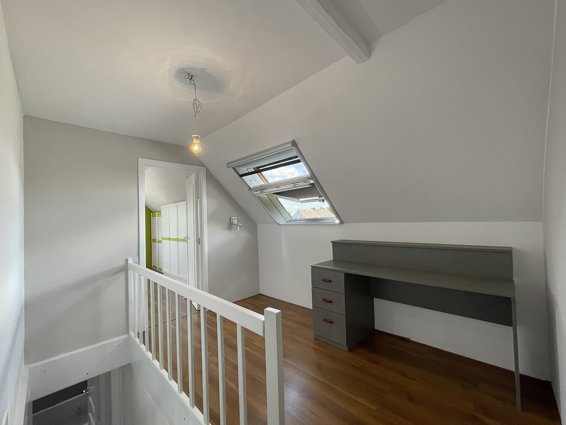 À l’étage, deux grandes chambres se partagent un palier central pouvant parfaitement faire office de bureau ou d’espace détente. Un petit dressing complète l’étage.