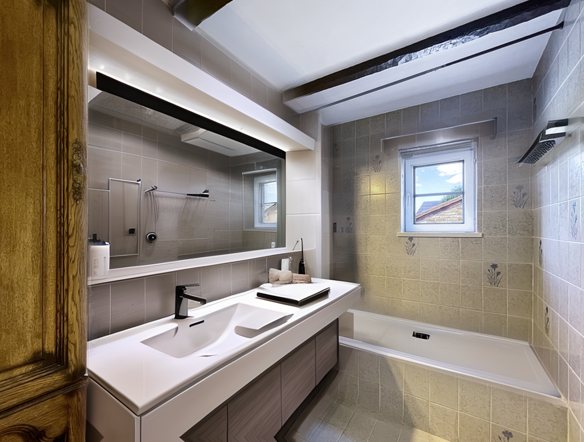 Une cuisine équipée, une salle de bains, une chambre ainsi qu’un vaste espace bureau (anciennement garage) complètent ce niveau.