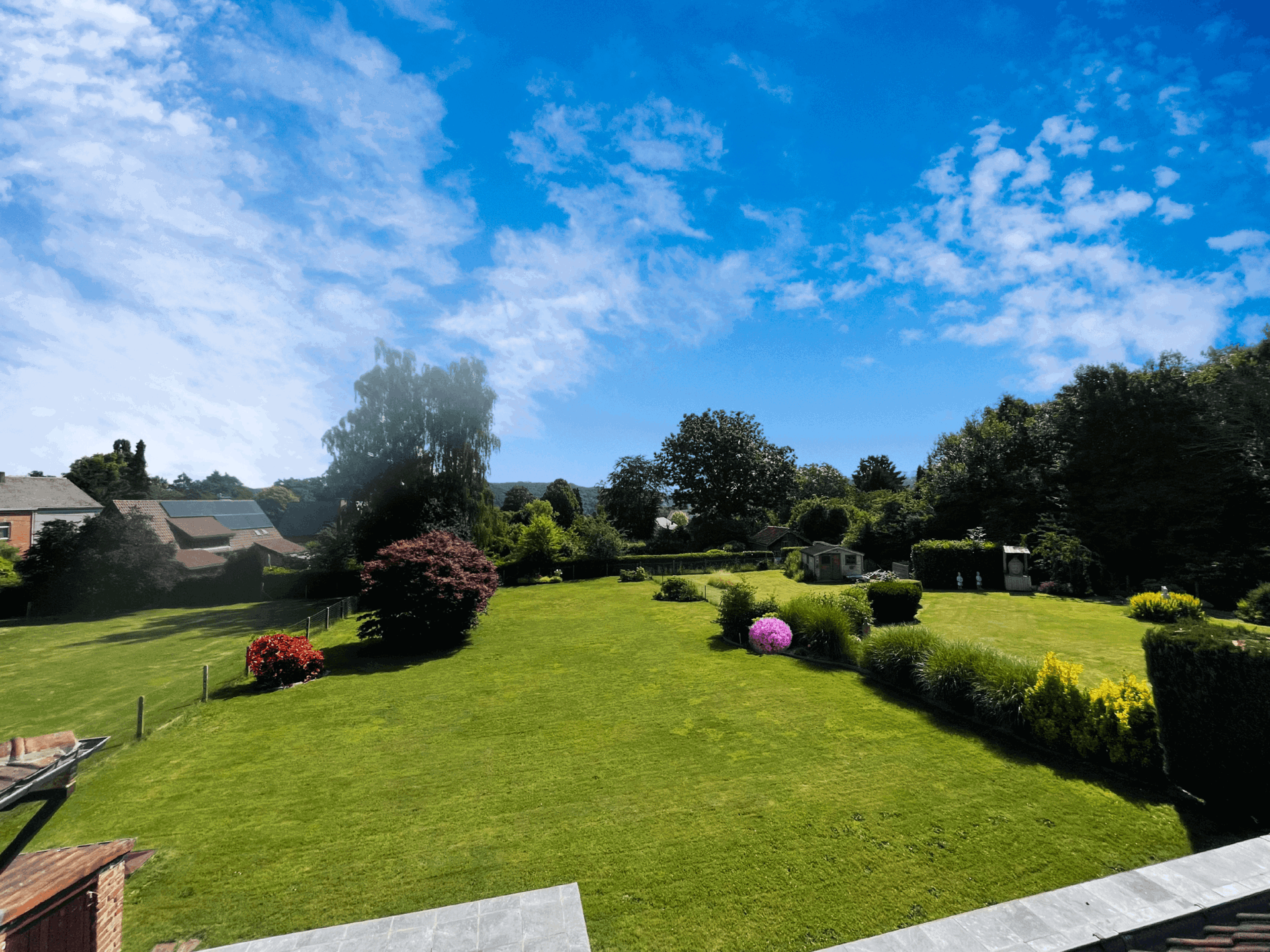 Au rez-de-chaussée, vous découvrirez un hall d’entrée accueillant, un spacieux séjour agrémenté d’une cassette à bois et d’un accès à une grande terrasse surplombant un magnifique jardin arboré — un véritable havre de paix aux couleurs apaisantes.