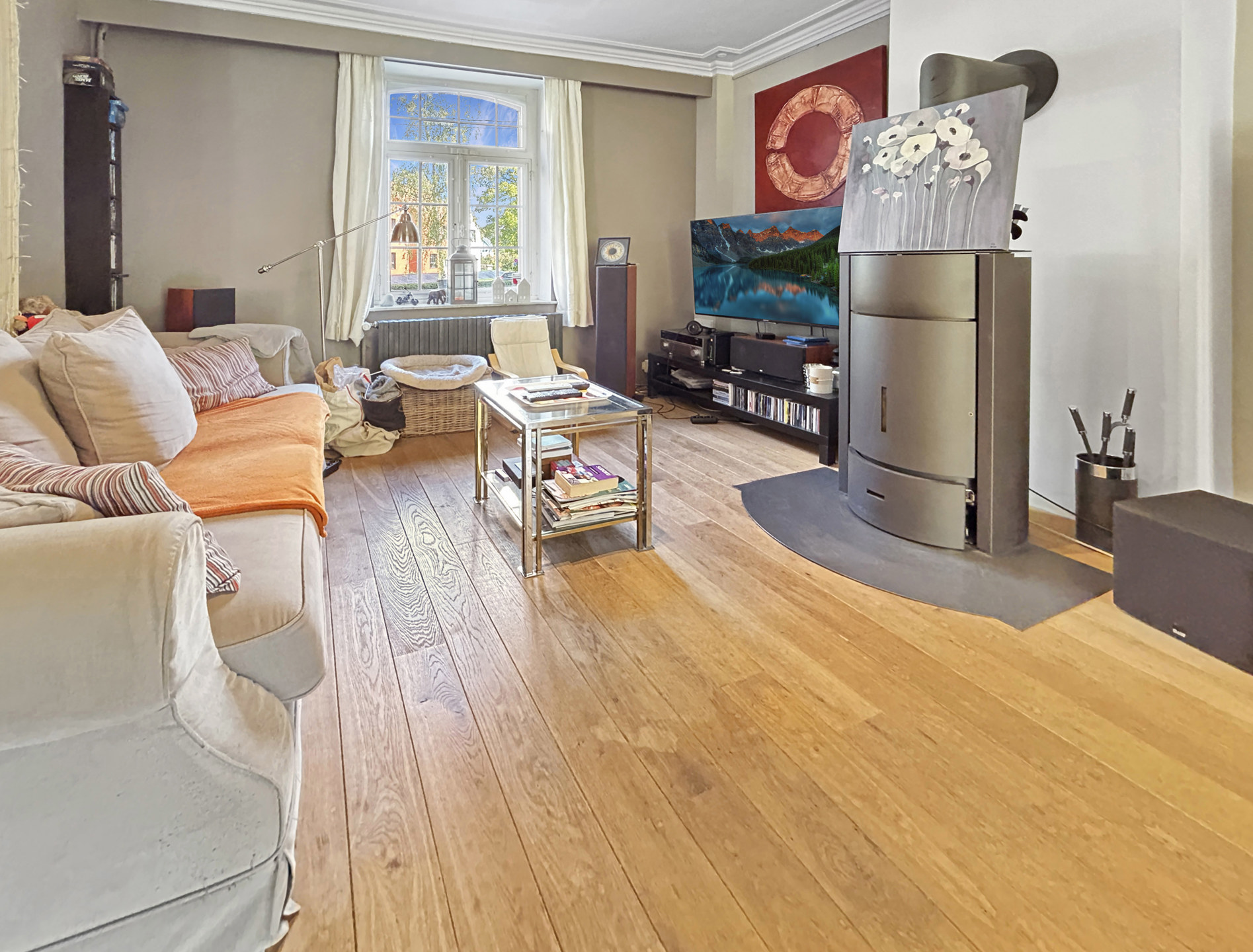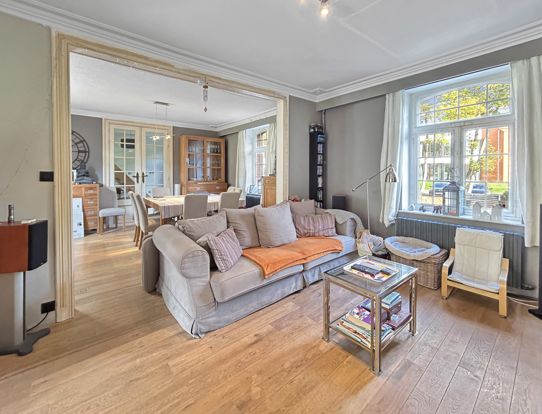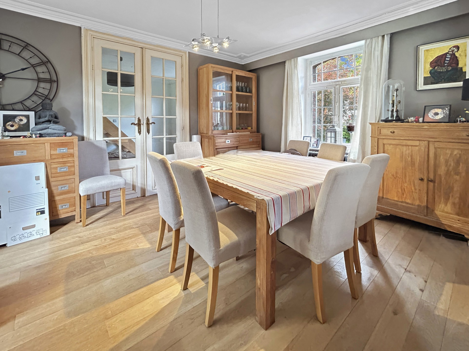La maison se compose, au rez-de-chaussée, d’un spacieux hall d’entrée, d’une salle à manger, d’un salon équipé d’un poêle Stûv, d’une cuisine Poggenpohl, d’une véranda, ainsi que d’une buanderie avec WC.