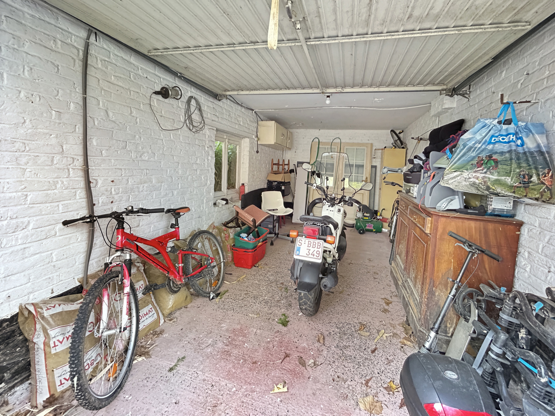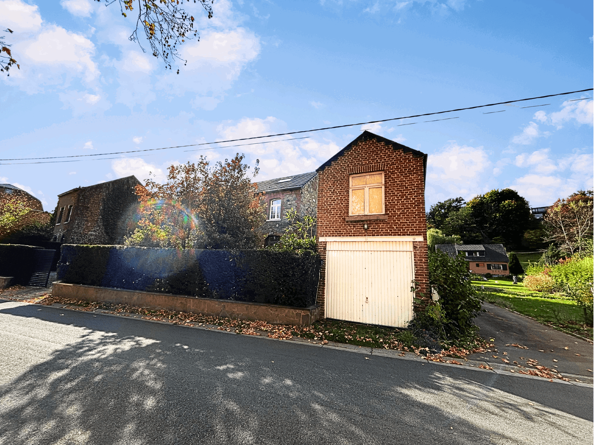 L’annexe cadastrée séparément comprend une pièce au rez-de-chaussée (±10 m²), un garage, ainsi qu’un espace à l’étage équipé d’un chauffage et d’un point d’eau, pour une superficie d’environ 25 m².