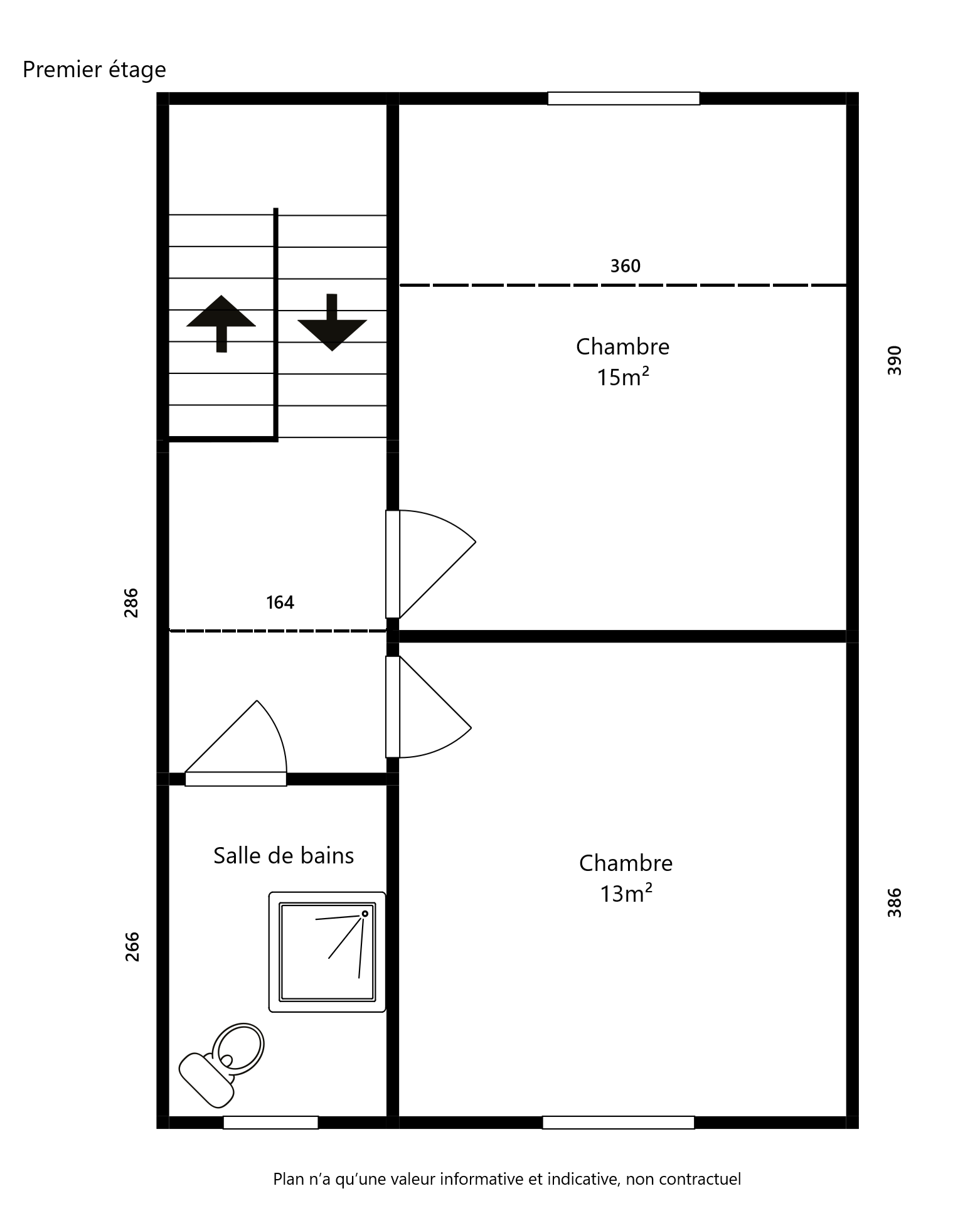 À l’étage, deux grandes chambres et une salle de bains vous offrent un espace de nuit confortable.