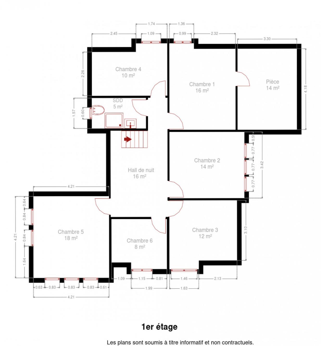À l'étage, 4 à 5 chambres, un dressing ou bureau, une salle de douche et un grenier non aménagé.