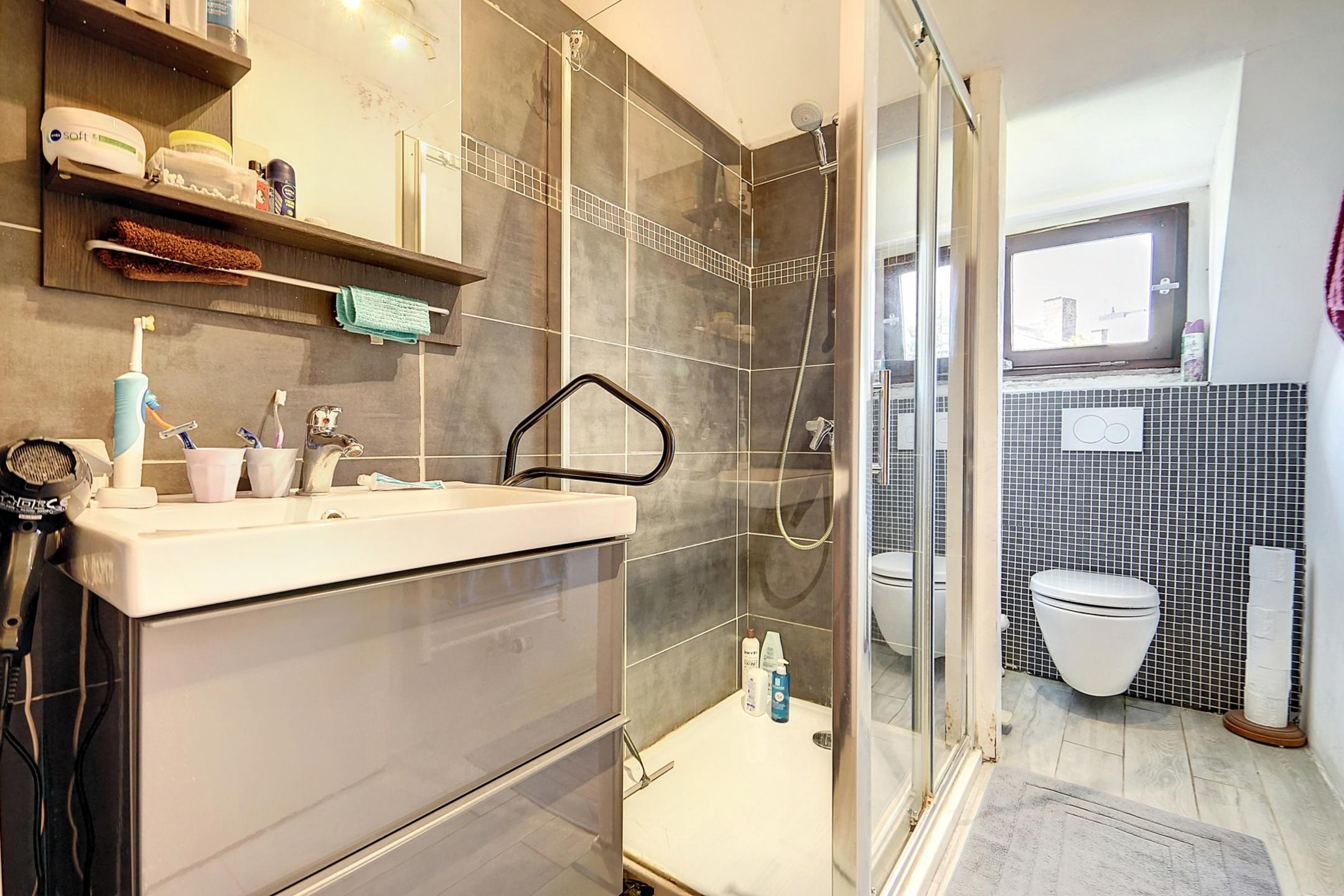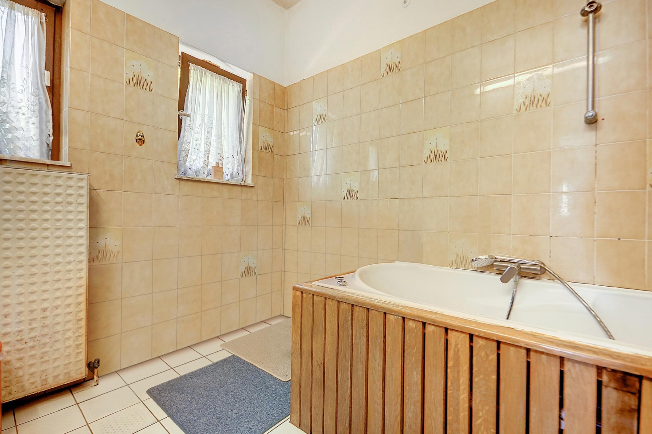 Toujours au niveau du rez-de-chaussée, on retrouve une grande chambre et une salle de bain ainsi qu'un wc séparé.