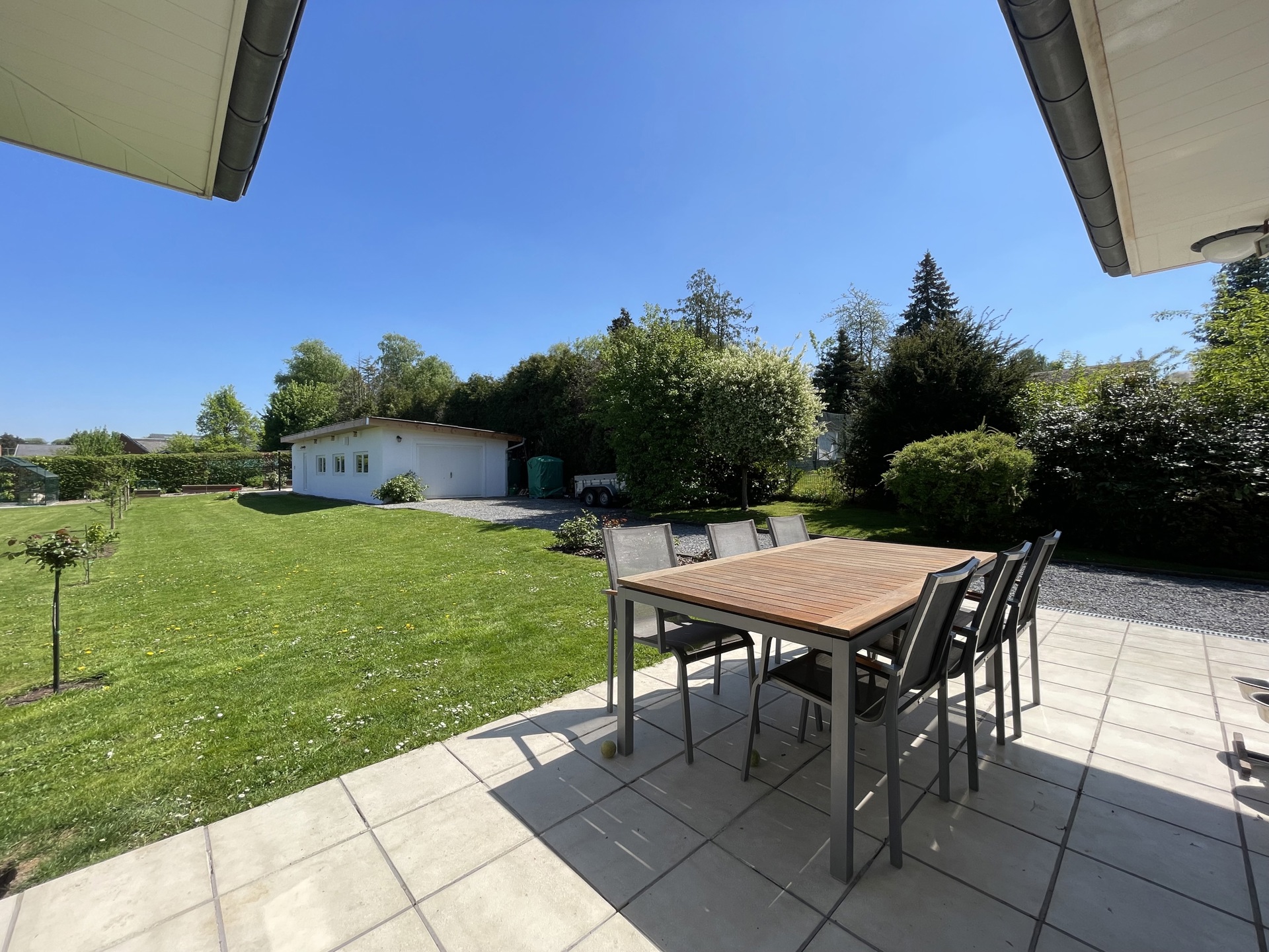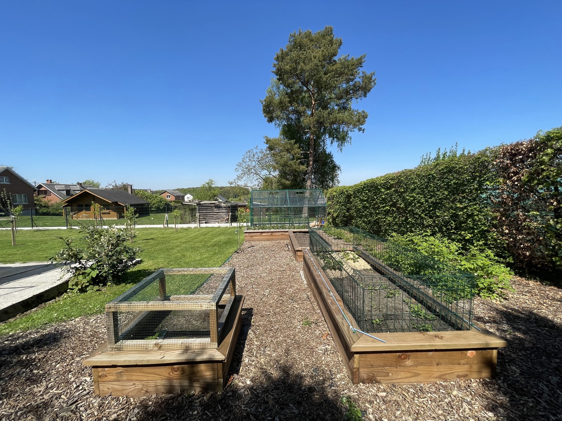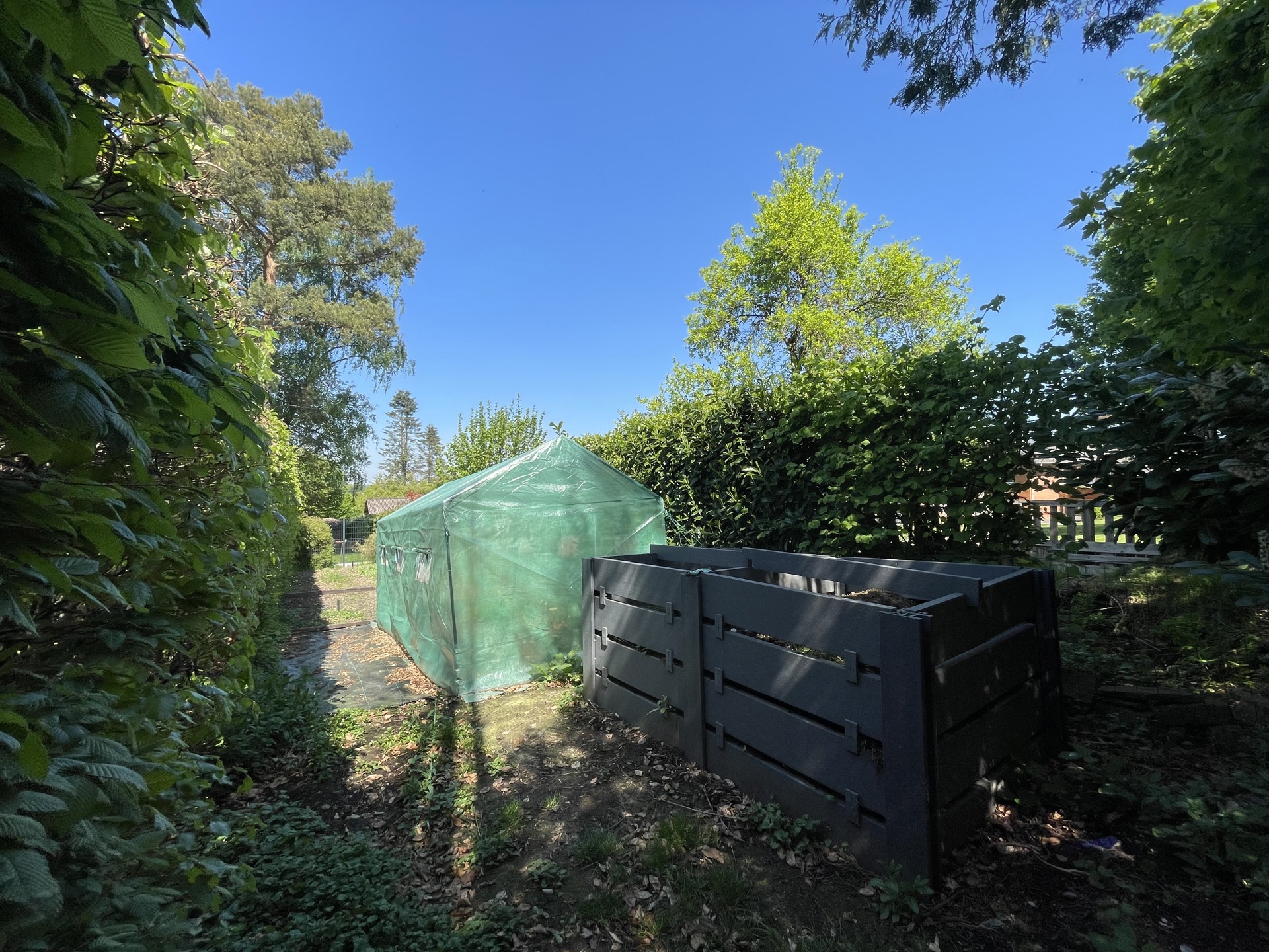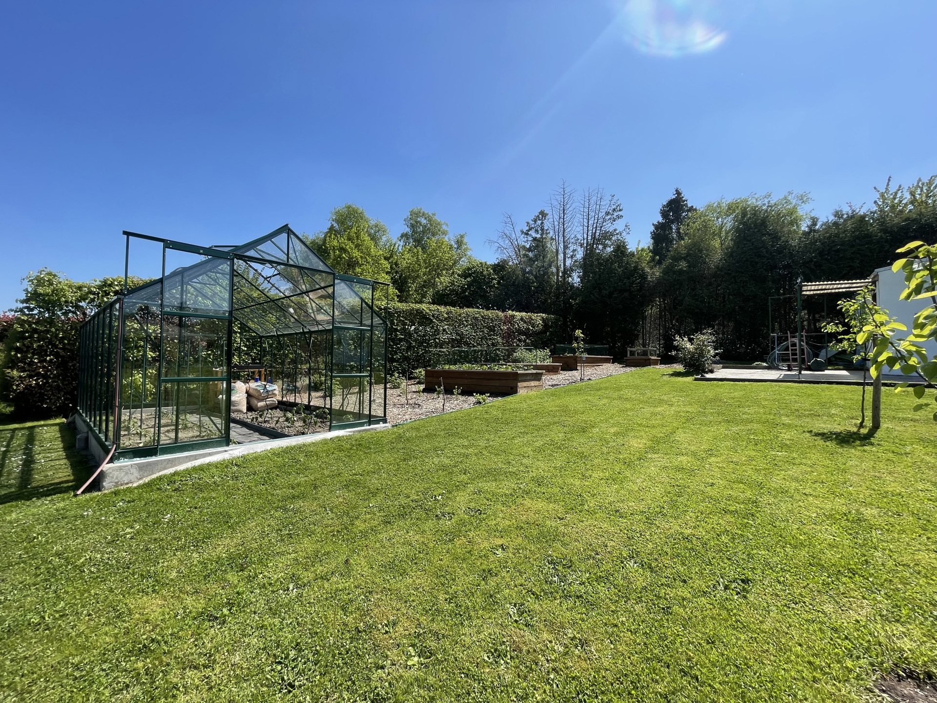 À l'extérieur, le jardin, véritable havre de paix, est soigneusement arboré avec de nombreux arbres fruitiers. Vous y trouverez également une grande serre en verre, idéale pour cultiver vos plants de tomates.