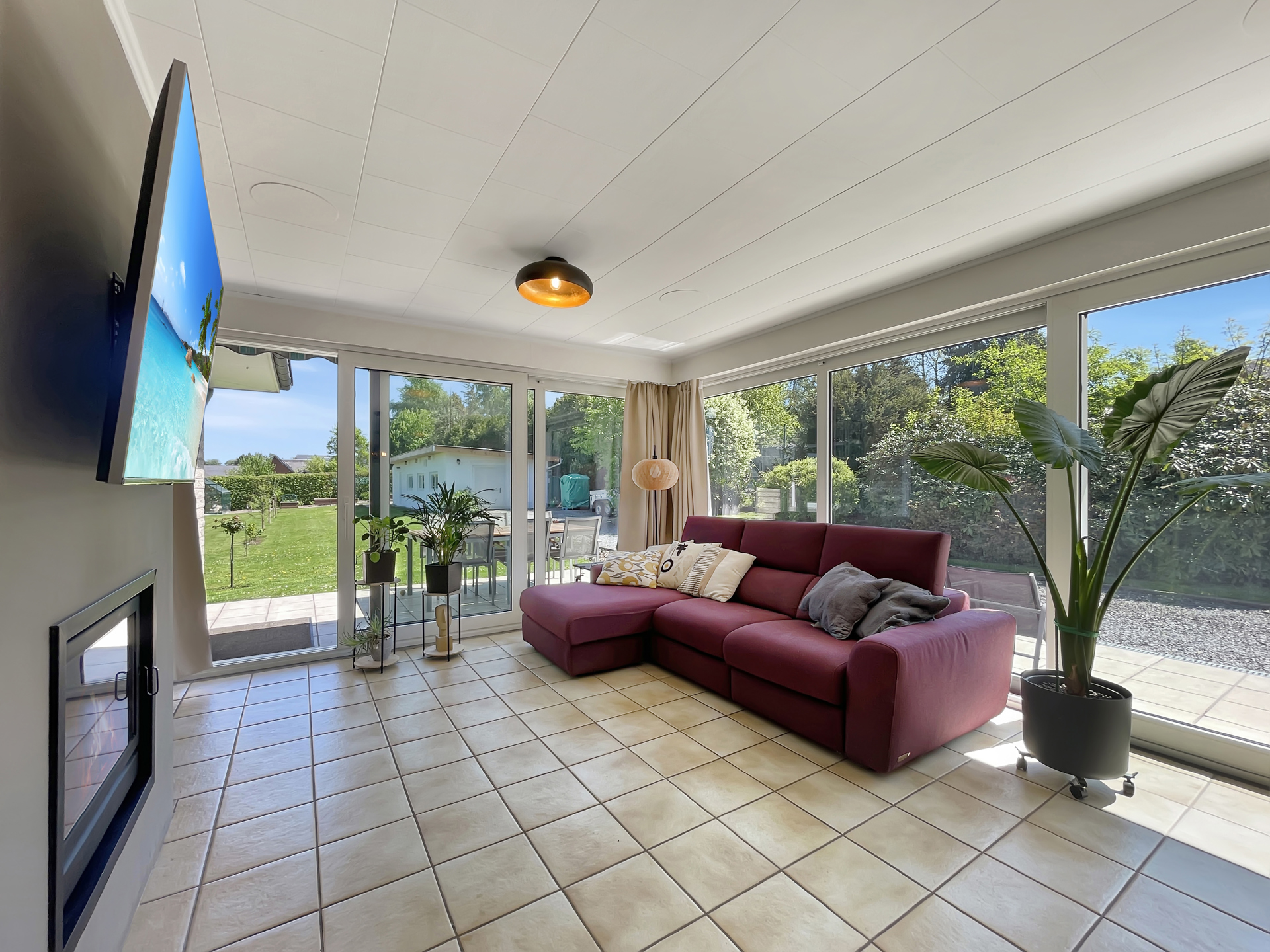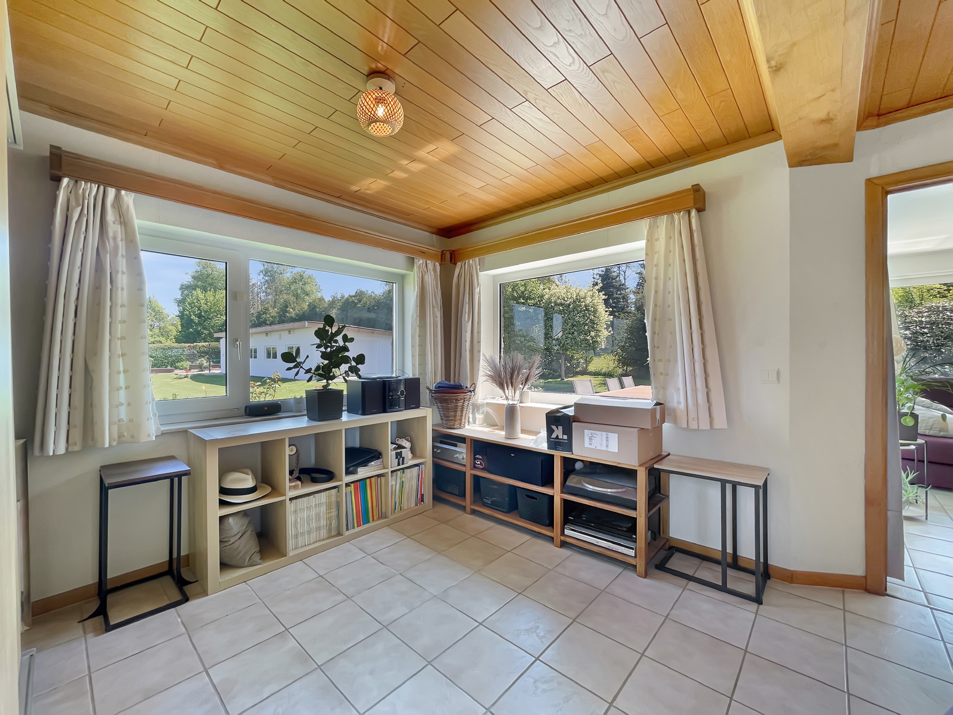 Offrant un cadre de vie idéal, ce bien se compose d'un séjour baigné de lumière, équipé d'un insert à bois et bénéficiant d'un accès direct à la terrasse ainsi qu'au jardin.