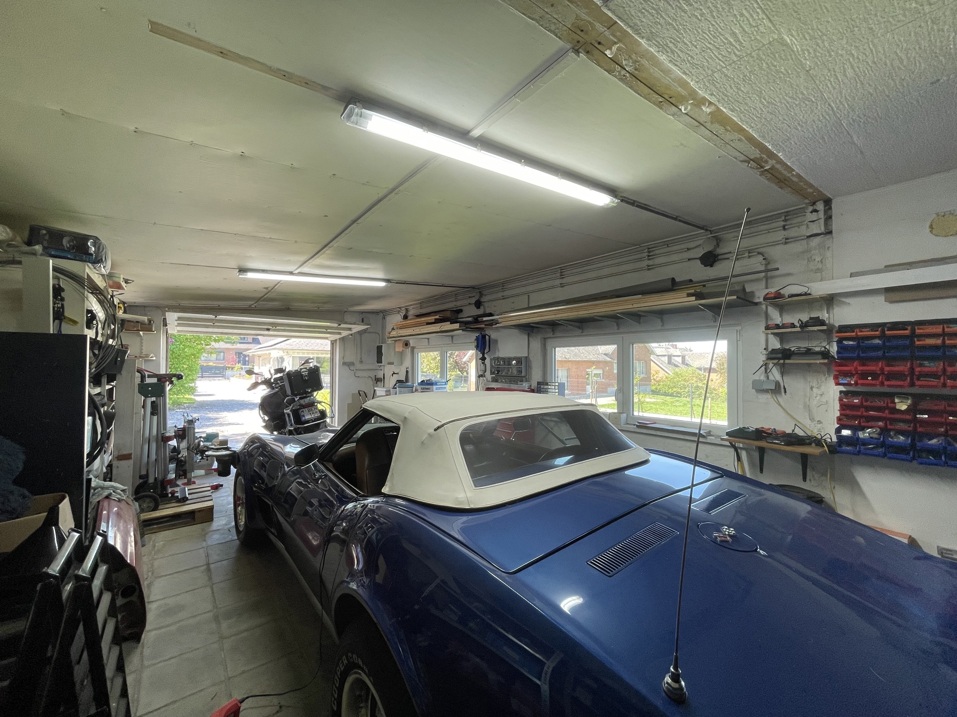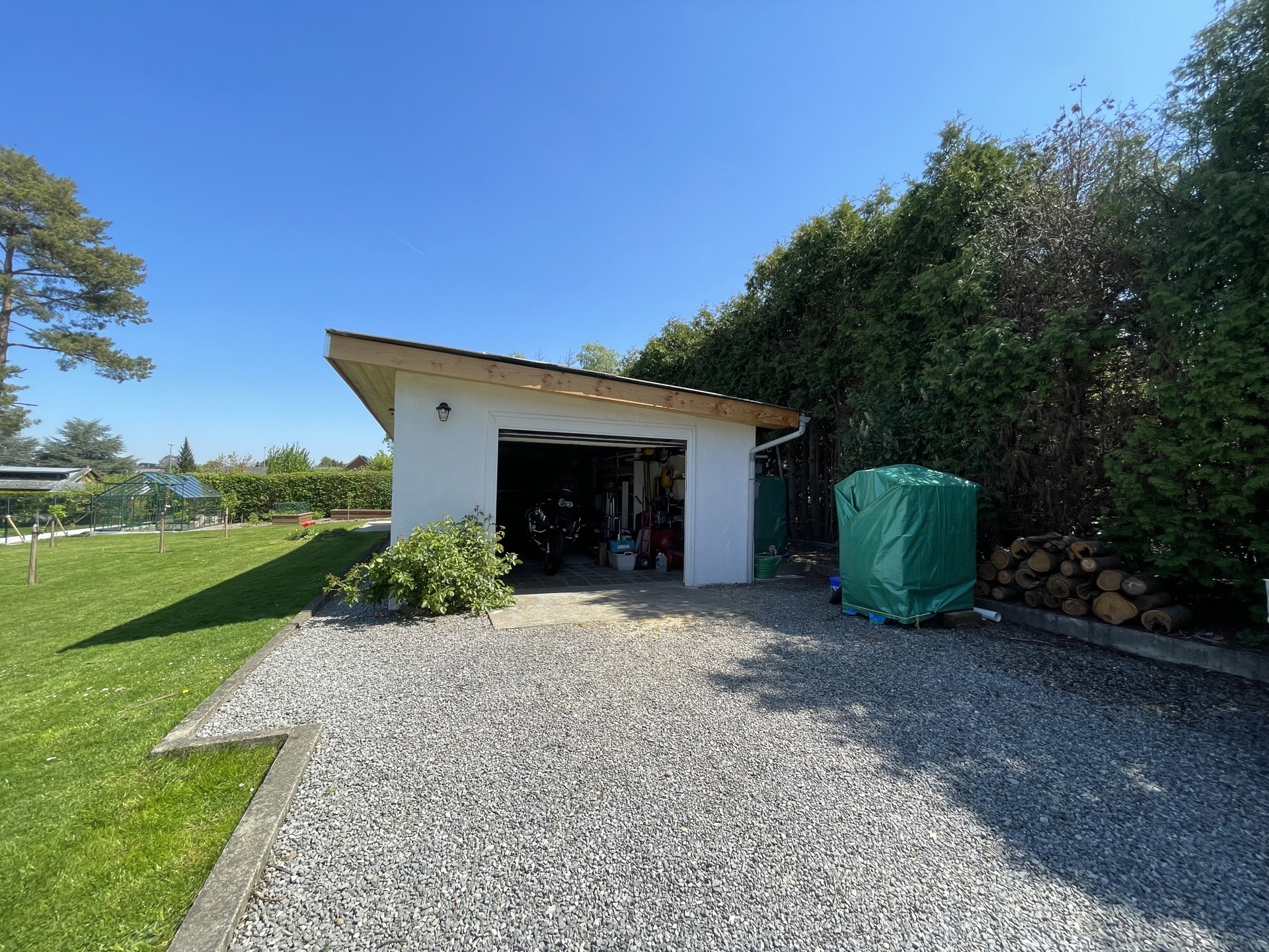 Côté annexe, vous profiterez d'un grand garage carrelé pouvant accueillir deux voitures, avec de nouveaux châssis en PVC.