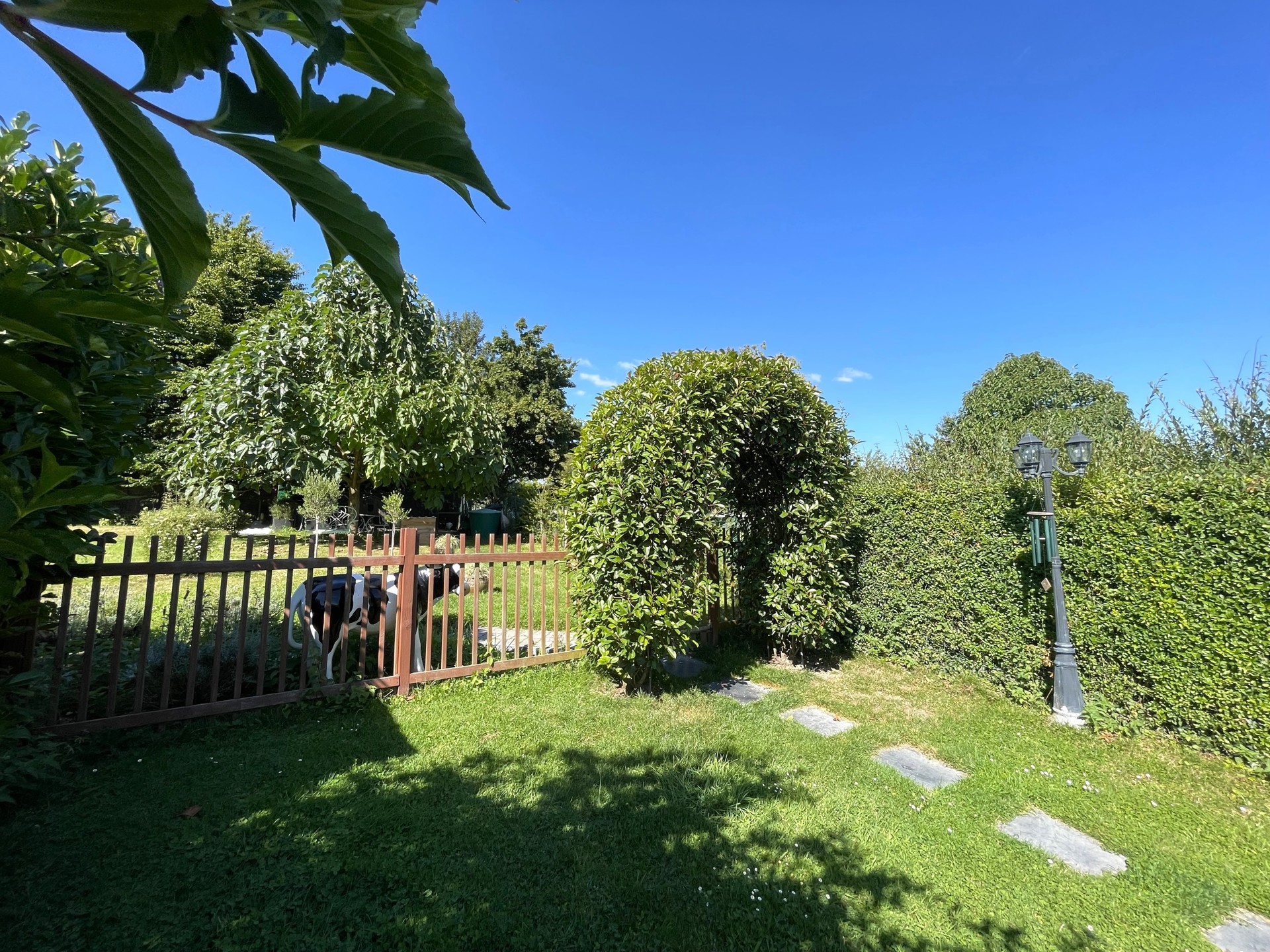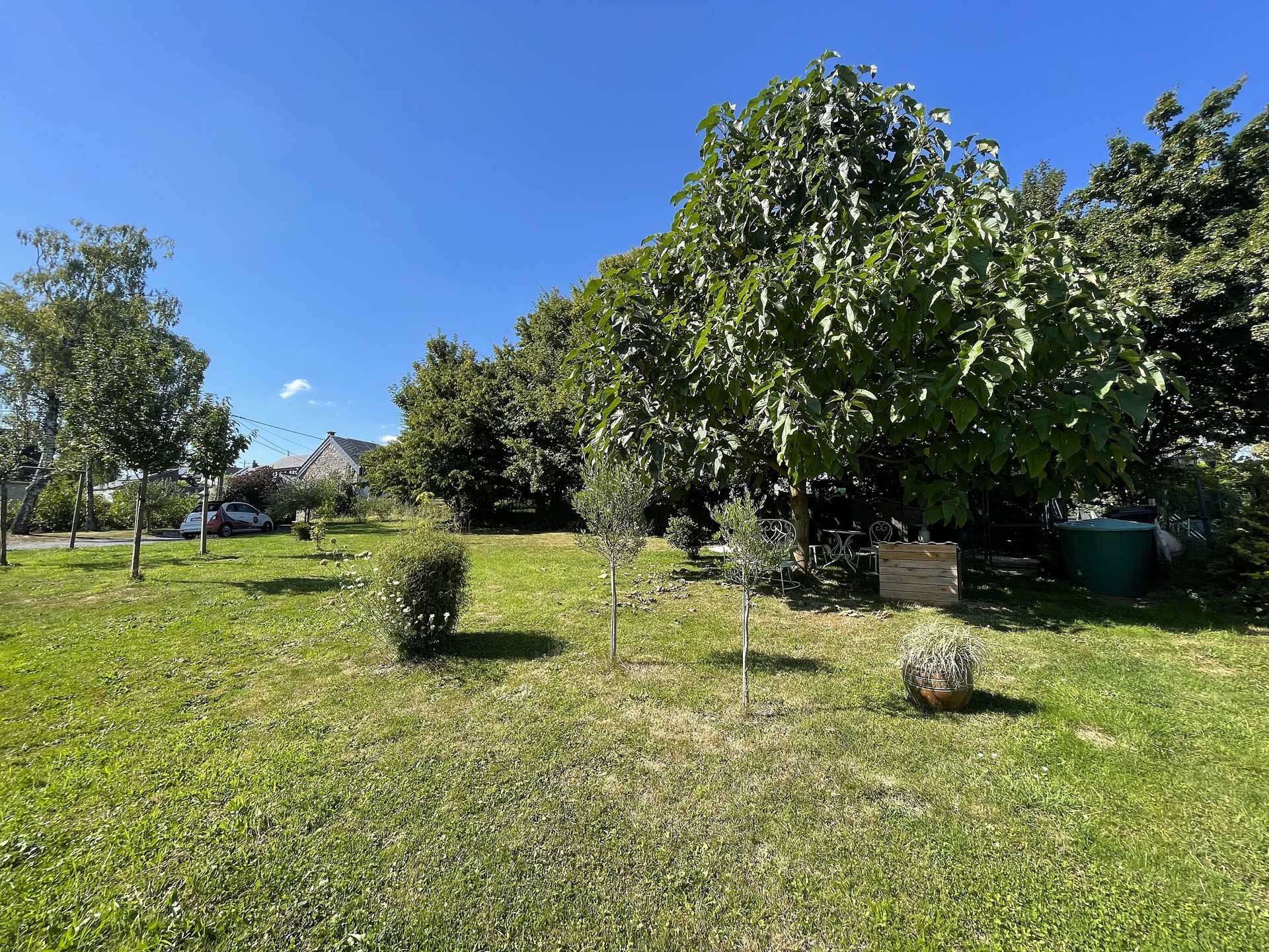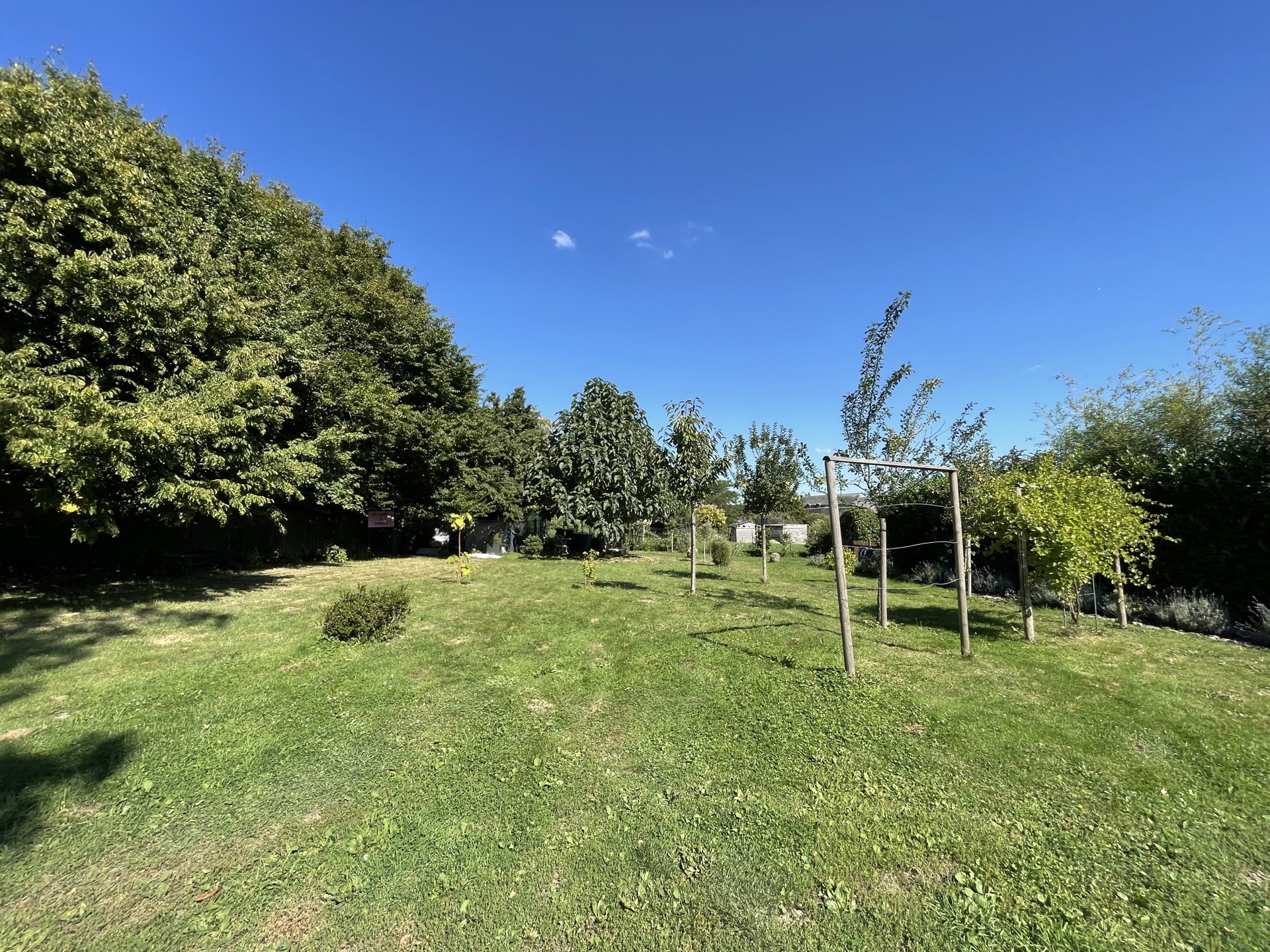 Extérieurs : une vaste terrasse avec espace de rangement donnant sur un premier jardin de 4,62 ares dédié à la détente. En prolongement, un second terrain de 8,42 ares, aménagé en verger, poulailler et zone de stationnement, permet d’accueillir de nombreux véhicules. Une seconde petite terrasse à l’avant de la maison offre la possibilité de profiter du soleil à tout moment de la journée.
