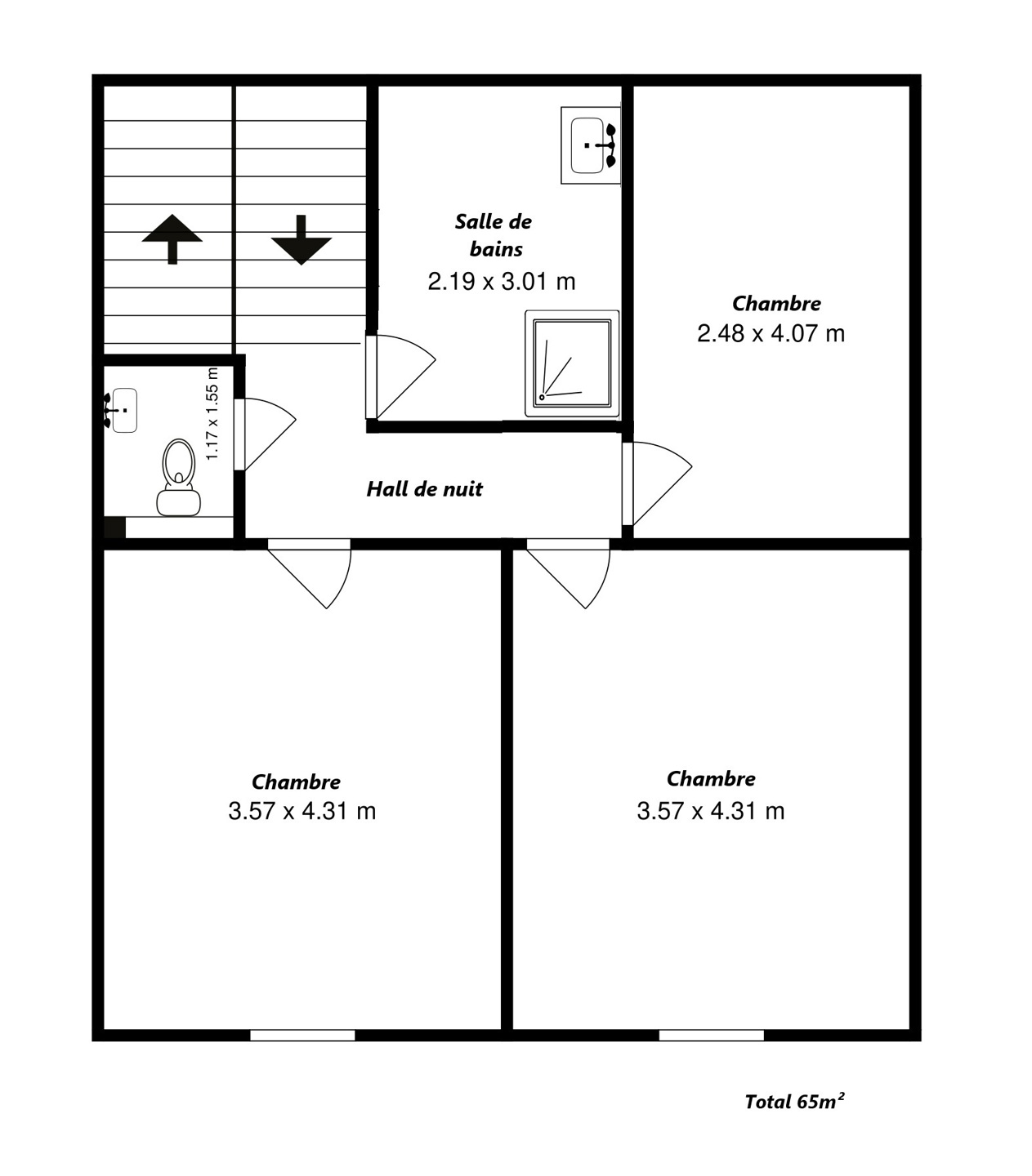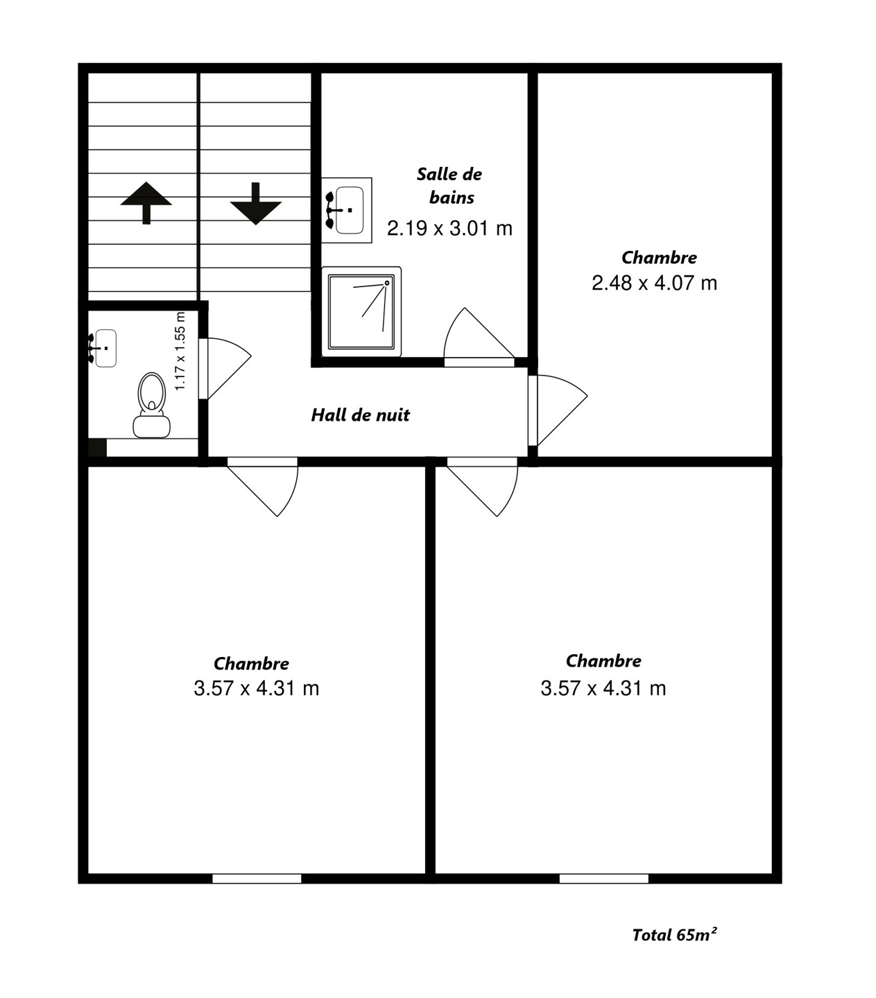 La distribution des chambres s'organise sur deux niveaux et deux demi-niveaux, comprenant huit chambres spacieuses et quatre salles de douche. Certains demi-niveaux disposent de chambres avec salle d’eau privative, un séjour et un balcon, parfaits pour profiter du cadre paisible.