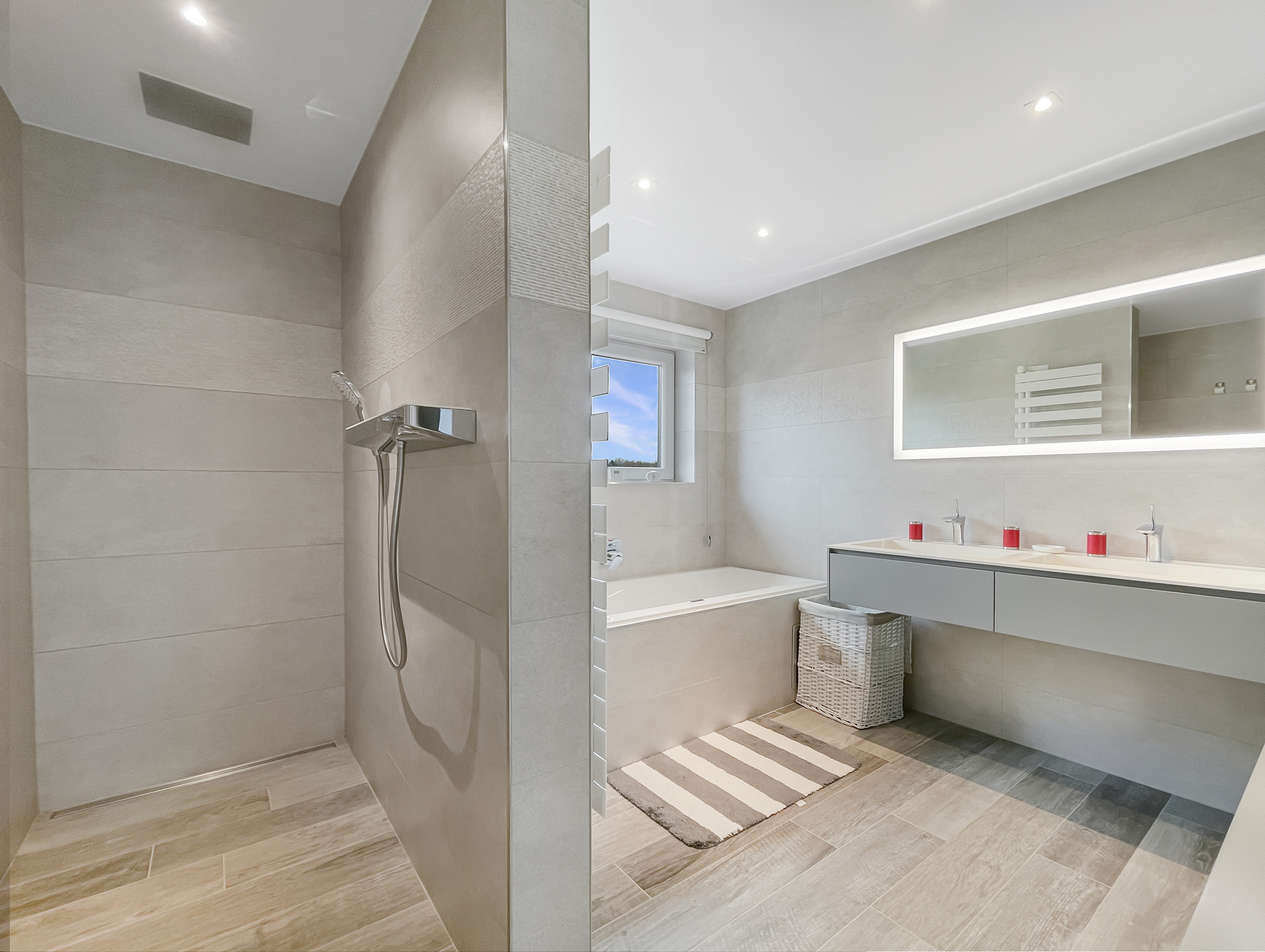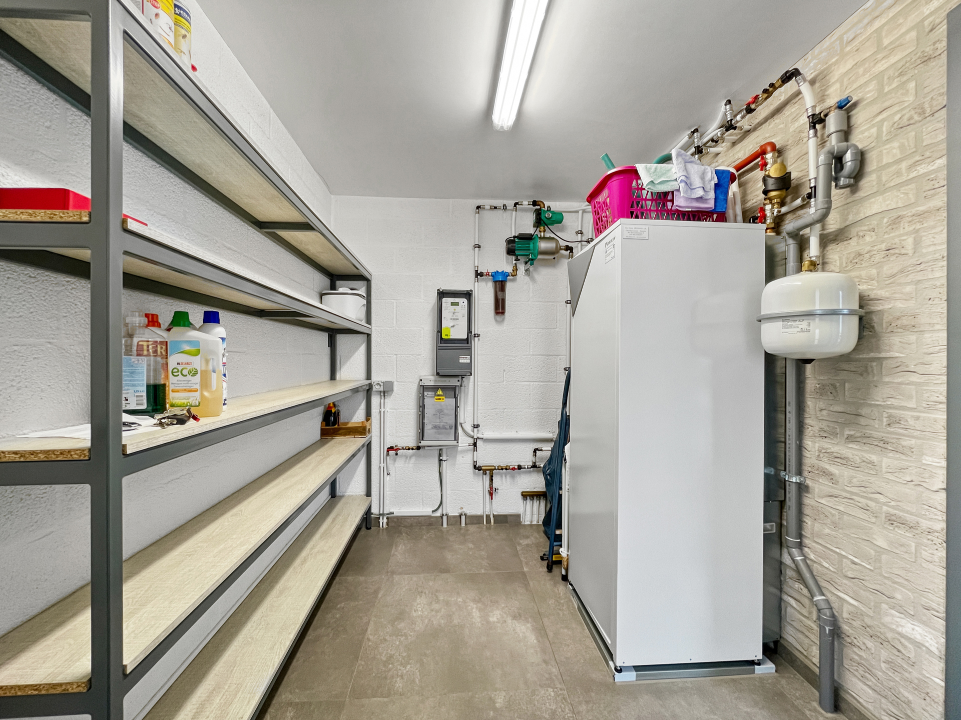 Aux niveaux technique et énergétique, cette villa bénéficie d'une très bonne isolation (PEB A), une pompe à chaleur de marque Daikin avec chauffage sol sur l'ensemble du rez-de-chaussée, un système de ventilation double flux, une citerne d'eau de pluie de 7500 litres avec groupe hydrophore raccordé sur les 2 Wc's et un robinet extérieur, elle dispose également d'une alarme intérieure et extérieure.