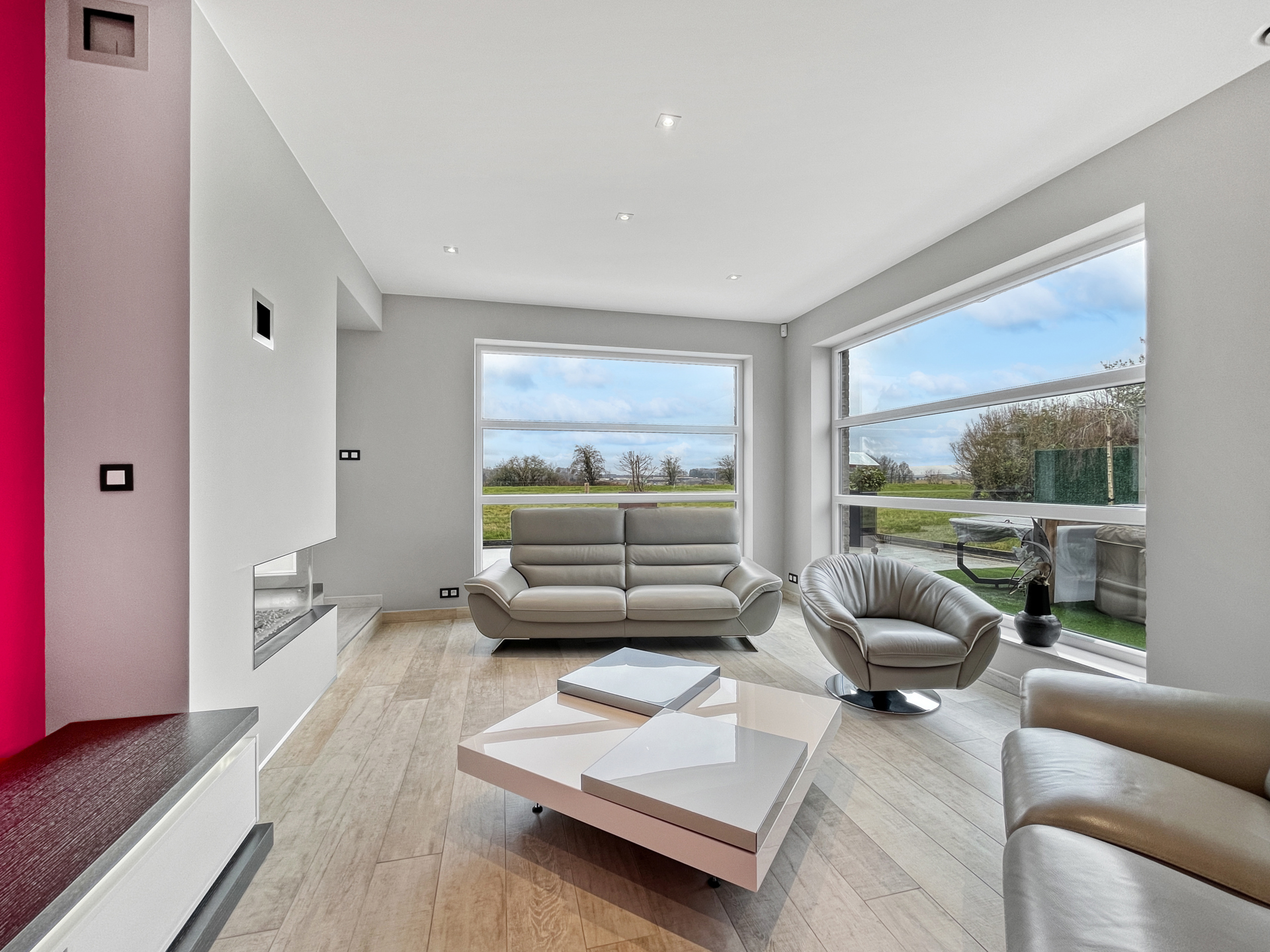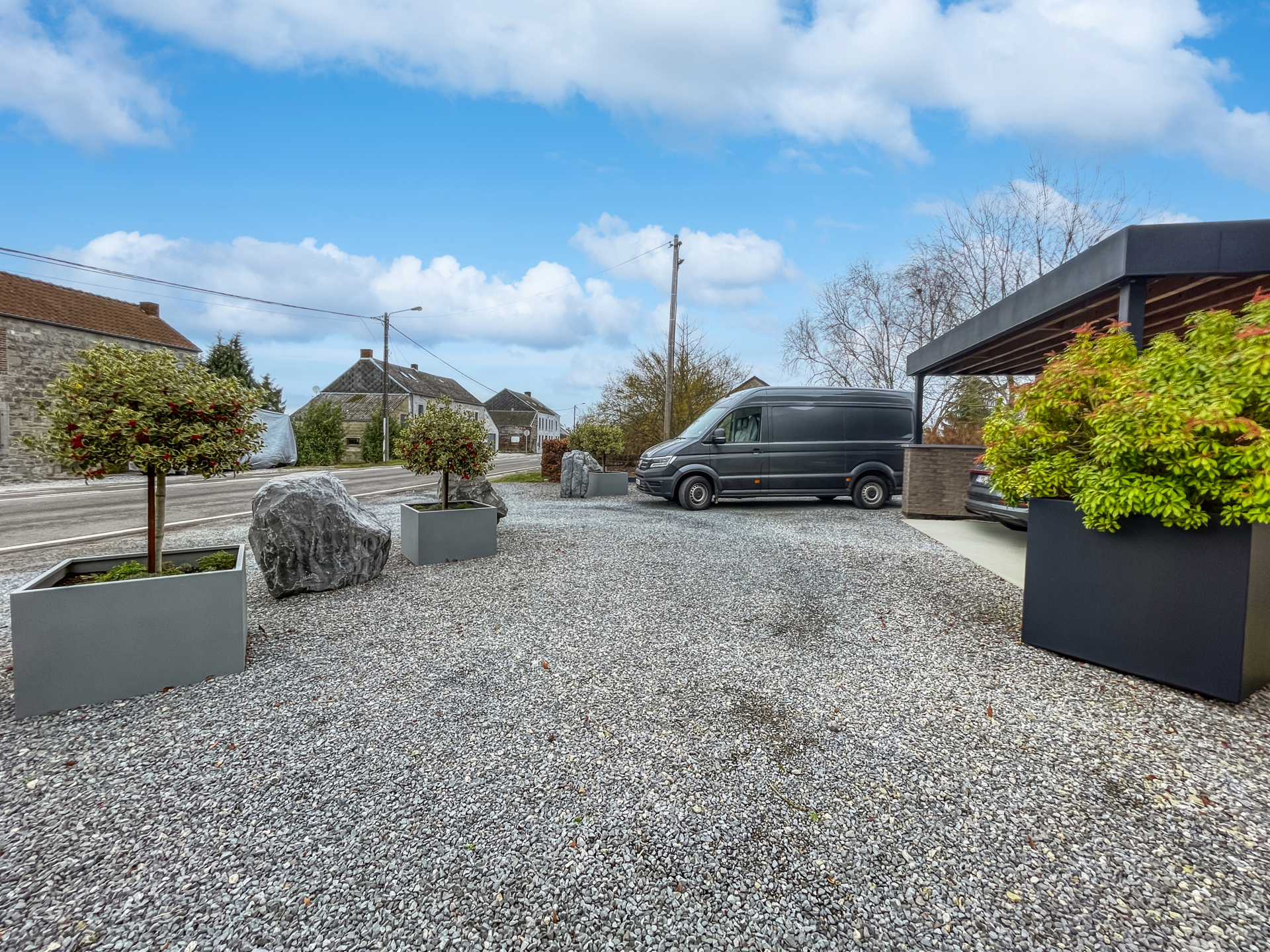 Cette propriété 4 façades construite sur un terrain avec vue dégagée est équipé d'un confortable car-port (borne de chargement électrique).